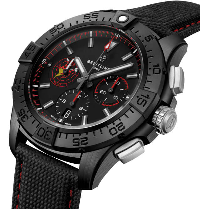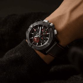 Die Avenger wurde für Jetpilotinnen und -piloten entwickelt und ist eine Uhr, die den härtesten Bedingungen im Cockpit standhält und sich nie geschlagen gibt. Die Editionen sind der United States Naval Academy und zwei Elitefliegerstaffeln der US Navy gewidmet: den Dust Devils und den Bloodhounds. Aber man muss nicht zur Luftwaffe gehören, um ihr kühnes Design, ihre außergewöhnliche Widerstandsfähigkeit und ihre überragende Funktionalität zu schätzen. Jede Version trägt das Emblem und die Farben der Einheit - rot und schwarz für die Dust Devils, grau und gelb für die Bloodhounds, blau und gelb für die U.S. Naval Academy - sowie spezielle Gravuren, die den offenen Gehäuseboden des Breitling Manufakturkalibers 01 säumen. Alle drei verfügen über ein schwarzes Keramikgehäuse und Titanbeschläge, ergänzt durch Militärlederarmbänder mit kontrastierenden Ziernähten. Und auch wenn Sie kein Fass aufmachen können, werden Sie die 300 m Wasserdichtigkeit, die griffige Funktionalität und das korrosionsbeständige Design dieser Uhren zu schätzen wissen.- Durchmesser