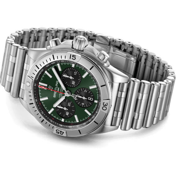 Eine Breitling-Uhr für jede Situation und jede Aktivität. Die Chronomat nimmt in der Geschichte von Breitling einen wichtigen Platz ein. Sie wurde 1984 lanciert, zu einer Zeit, als besonders flache Quarzuhren in Mode waren. Breitling setzte mutig auf eine mechanische Uhr mit beeindruckenden Proportionen. Die Chronomat basiert auf dem Chronometer Frecce Tricolori, der in Zusammenarbeit mit der berühmten italienischen Fliegerstaffel entwickelt und 1983 lanciert wurde. Mit diesem Modell feierte Breitling stilvoll sein hundertjähriges Bestehen. Sie bedeutete die Rückkehr des mechanischen Chronometers zu seiner rechtmässigen Vorrangstellung innerhalb der Marke, die ihren Weltruf auf diese aussergewöhnlichen Uhren gründete. Die Chronomat ist in verschiedenen Materialien erhältlich, von Edelstahl bis zu luxuriösem 18-karätigem Rotgold. Das Modell verfügt über ein 42-mm-Gehäuse und die legendäre Lünette mit den vier Reitern. Die Chronomat ist mit verschiedenen farbigen Zifferblättern erhältlich, die auf das charakteristische Rouleaux-Armband aus Metall oder Kautschuk abgestimmt sind. Angetrieben wird das Modell vom Breitling Manufakturkaliber 01, einem COSC-zertifizierten Chronometer.- Durchmesser