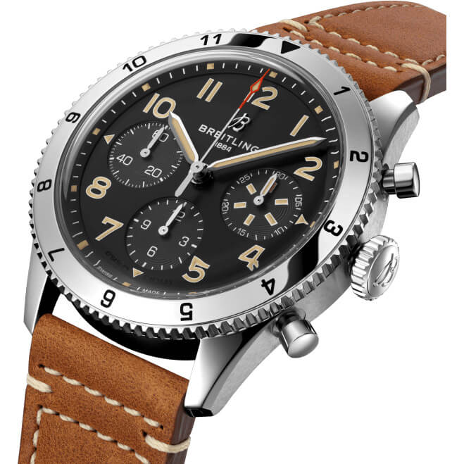 Die Geschichte von Breitling ist eng mit der Entwicklung der Luftfahrt verbunden, von den mutigen Anfängen bis zur Geburtsstunde der kommerziellen Luftfahrt. In den 1930er-Jahren etablierte sich das Breitling Huit Aviation Department durch die Schaffung von hochpräzisen Cockpituhren. Zwei Jahrzehnte später brachten sie ein weiteres innovatives Fluginstrument auf den Markt, diesmal in tragbarer Form: die Ref. 765 AVI. Diese wegweisende Fliegeruhr legte den technologischen Grundstein für die heutige Classic AVI Kollektion, die von der Robustheit und Eleganz der berühmten frühen Flugzeuge inspiriert ist. Die Classic AVI P-51 Mustang zollt einer dieser legendären Flugmaschinen Tribut. Als dieses Flugzeug in nur 120 Tagen entwickelt wurde, ahnte selbst der Hersteller, North American Aviation, nicht, welch ein Kraftpaket sie erschaffen hatten. Die aerodynamischen Flügel und das innovative Motorkühlsystem, damals noch als experimentell angesehen, verliehen der P-51 eine beispiellose Geschwindigkeit und Reichweite. Durch den Einbau eines Merlin-Motors von Rolls-Royce konnte das Flugzeug noch höher fliegen und avancierte zu einem der besten Allround-Kampfflugzeuge seiner Zeit. Die Classic AVI P-51 Mustang ist eine authentische Pilotenuhr, die speziell entwickelt wurde, um den Anforderungen eines Vintage-Cockpits gerecht zu werden. Sie zeichnet sich durch große, hervorragend ablesbare arabische Ziffern auf dem Zifferblatt und der geriffelten Lünette aus, die auch mit Pilotenhandschuhen leicht bedient werden kann. Das 42-mm-Gehäuse und das Kalbslederarmband mit Ziernaht erinnern optisch an klassische Fliegerjacken, während das Edelstahlarmband eine elegante Alternative bietet. Diese Uhr wird von Piloten und anderen Reisenden gleichermaßen geschätzt, dank ihrer leichten Ablesbarkeit, Tragbarkeit und ihrem dezenten Stil. Die Classic AVI wird von einem COSC-zertifizierten Breitling-Kaliber 23 angetrieben und verfügt über eine Gangreserve von etwa 48 Stunden.