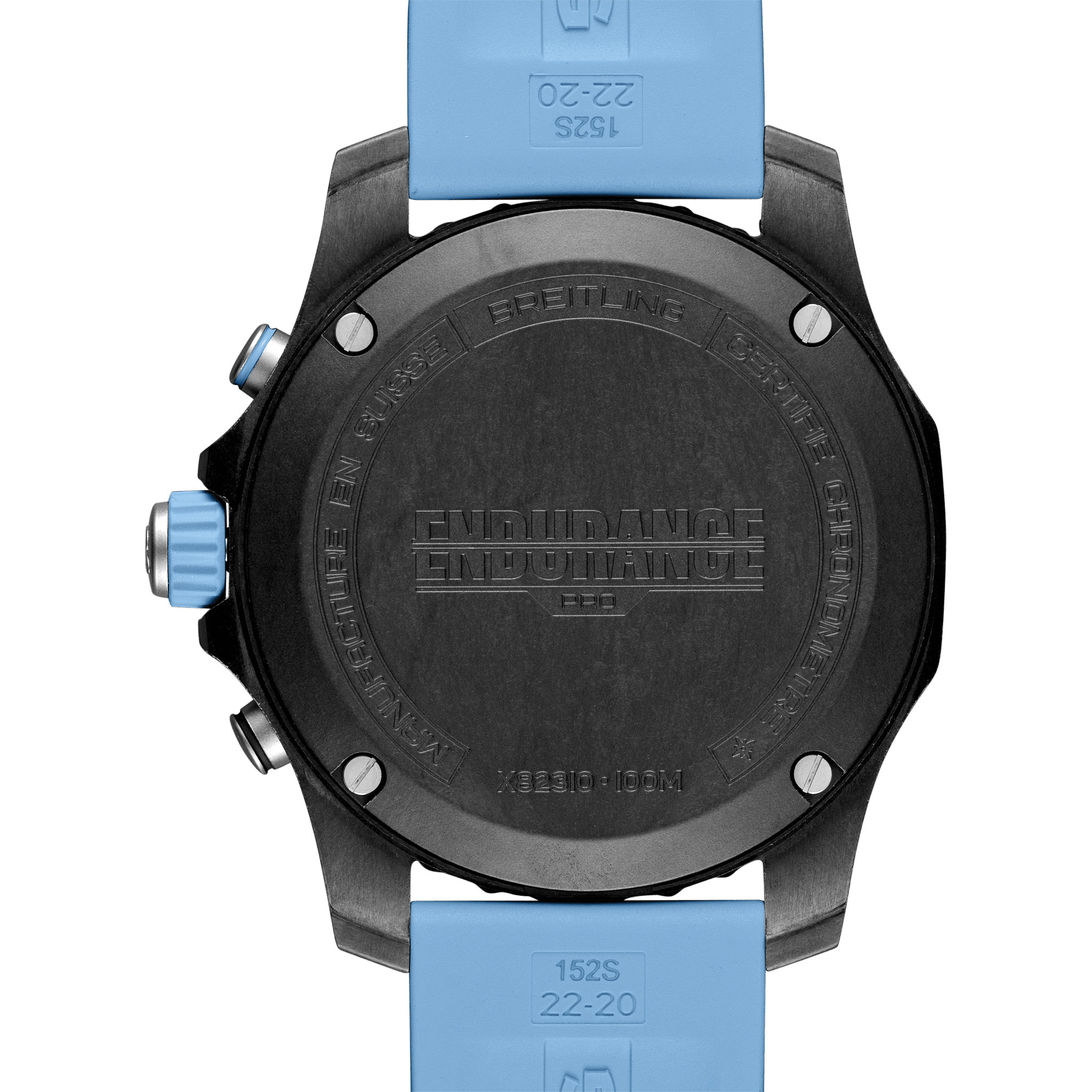 Professional Endurance Pro mit 44 mm Breitlight-Gehäuse und hellblauem Kautschukarmband. Schwarzes Zifferblatt mit farbigem Pulsometer Ring. Kautschukarmband Diver Pro III mit Doppeldornschließe aus Breitlight. Die Endurance Pro ist sowohl als federleichte Wettkampfuhr wie auch als lässiger Sportchronograph für jeden Tag konzipiert. Sie repräsentiert die perfekte Verschmelzung von höchster Präzision, innovativer Technologie und frischem, farbenfrohem Design. Sie ist die ultimative Athleisure-Uhr. Entworfen für Frauen und Männer, in deren aktivem Leben sich Professionalität und Sportlichkeit die Waage halten, ist die Endurance Pro den Herausforderungen eines anstrengenden Work-outs ebenso gewachsen wie den Ansprüchen an den Alltagschic. Die Endurance Pro verfügt über ein ultraleichtes Gehäuse aus Breitlight®. Dieser widerstandsfähige Werkstoff ist 3,3-mal leichter als Titanium und 5,8-mal leichter als Edelstahl. Das antimagnetische, thermisch stabile und hypoallergene Breitlight® ist hochgradig kratz-, zug- und korrosionsfest. Die haptische Wirkung ist wärmer als die von Metall, und der leichte Textureffekt unterstreicht den Einfallsreichtum des Designs. Breitlight® ist zu 100 % Swiss-made und nur bei Breitling erhältlich. Die Endurance Pro wird in einer Auswahl bunter Zifferblätter und Kautschukarmbändern für die Breitlight® Doppeldornschliesse angeboten und kann auch mit einem der farbenfrohen Breitling NATO-Armbänder aus ECONYL®-Garn von Outerknown kombiniert werden. Herzstück der Endurance Pro ist das Kaliber 82 von Breitling, ein COSC-zertifizierter SuperQuartz™ Chronograph, der ausserordentliche Ganggenauigkeit bietet.