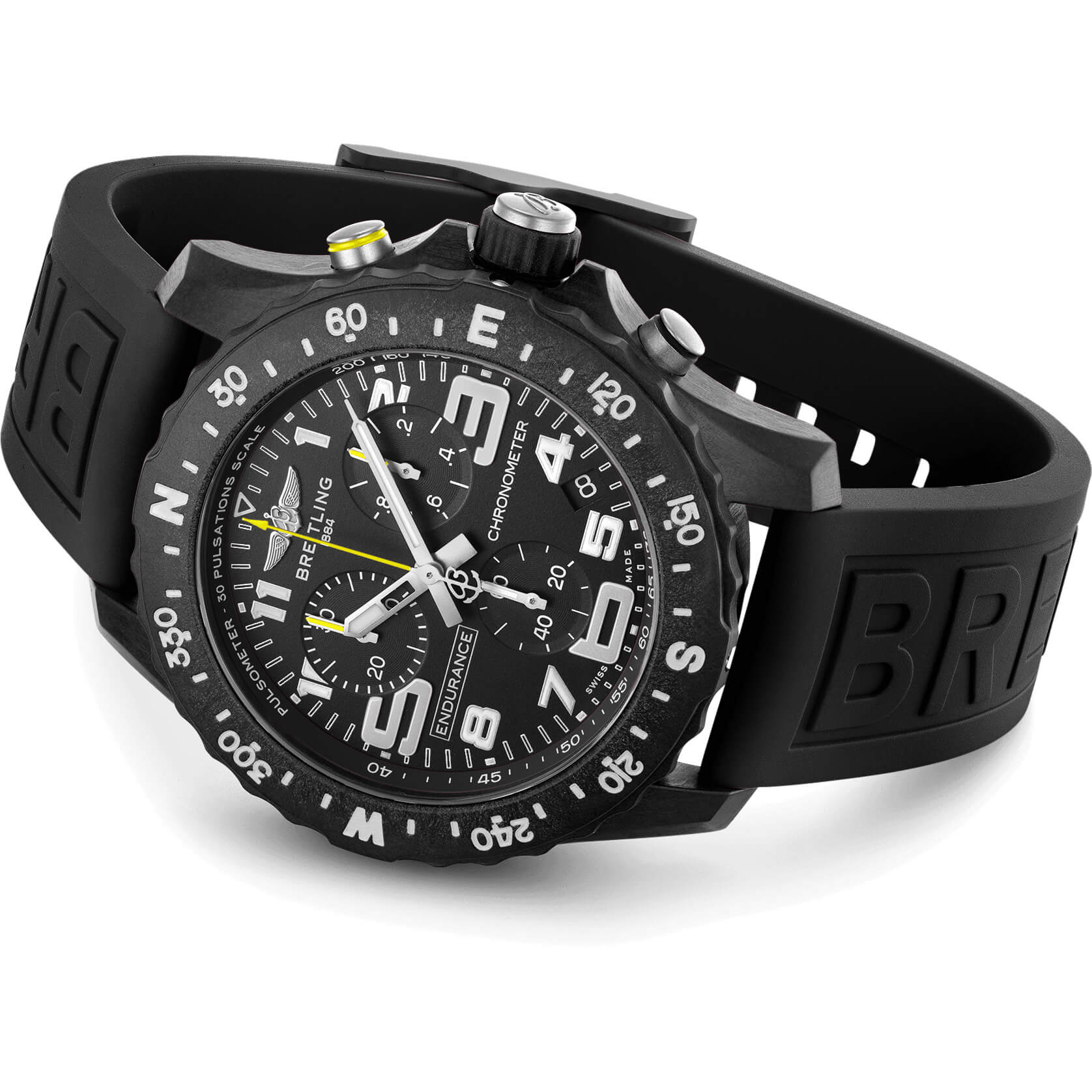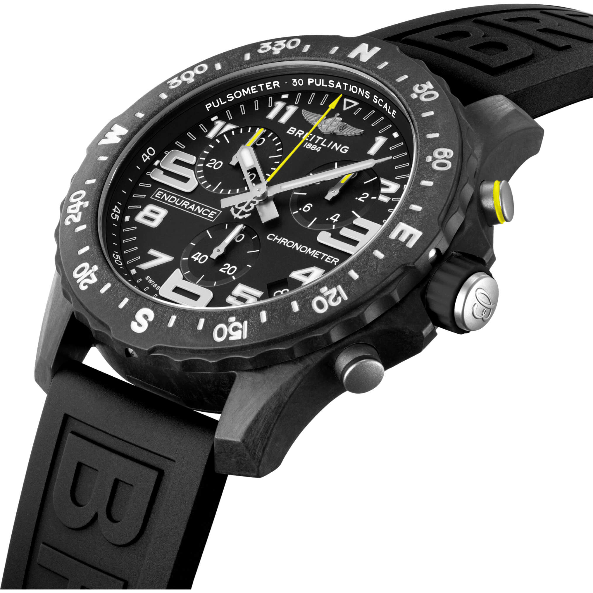 Die Endurance Pro ist sowohl als federleichte Wettkampfuhr wie auch als lässiger Sportchronograph für jeden Tag konzipiert. Sie repräsentiert die perfekte Verschmelzung von höchster Präzision, innovativer Technologie und einem modernen Design. Sie ist die ultimative Athleisure-Uhr - entworfen für Frauen und Männer, in deren aktivem Leben sich Professionalität und Sportlichkeit die Waage halten, ist die Endurance Pro den Herausforderungen eines anstrengenden Work-outs ebenso gewachsen wie den Ansprüchen an den Alltagschic. Die Endurance Pro verfügt über ein ultraleichtes Gehäuse dessen widerstandsfähiger Werkstoff 3,3-mal leichter als Titanium und 5,8-mal leichter als Edelstahl ist. Das antimagnetische, thermisch stabile und hypoallergene Breitlight ist hochgradig kratz-, zug- und korrosionsfest. Die haptische Wirkung ist wärmer als die von Metall, und der leichte Textureffekt unterstreicht den Einfallsreichtum des Designs. Breitlight ist zu 100 % Swiss-made und nur bei Breitling erhältlich. Herzstück der Endurance Pro ist das Kaliber 82 von Breitling, ein COSC-zertifizierter SuperQuartz Chronograph, der außerordentliche Ganggenauigkeit bietet.- Durchmesser