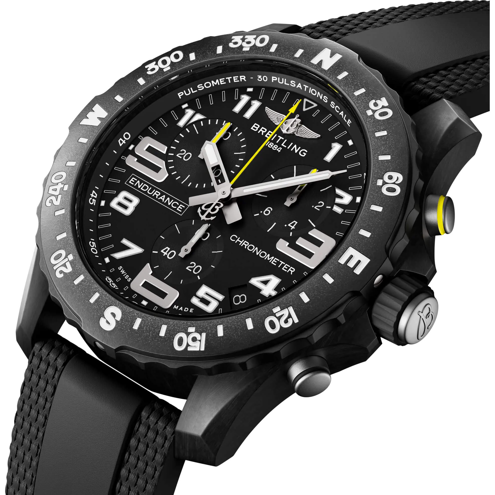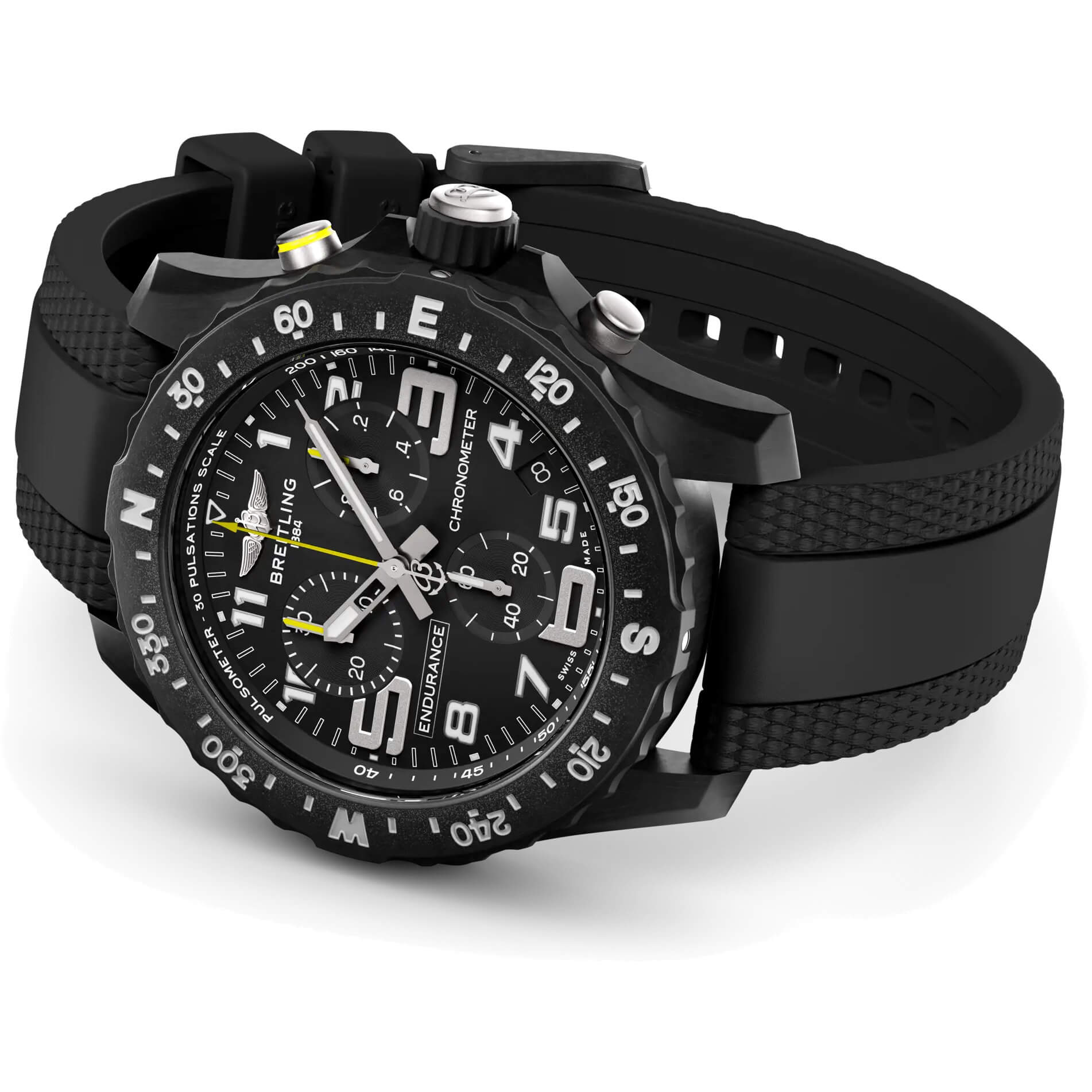 Die Endurance Pro vereint Leichtigkeit, Funktionalität und sportlichen Stil – ideal als Wettkampfzeitmesser oder lässiger Chronograph für den Alltag. Sie steht für die perfekte Kombination aus innovativer Technologie und dynamischem Design und ist die ultimative Athleisure-Uhr. Entwickelt für aktive Frauen und Männer, die Sport und Professionalität verbinden, hält sie sowohl intensiven Workouts als auch dem täglichen Leben stand. Ihr ultraleichtes Gehäuse besteht aus Breitlight®, einem exklusiven, Swiss-made Material, das 3,3-mal leichter als Titan und 5,8-mal leichter als Edelstahl ist. Es ist antimagnetisch, korrosionsbeständig, hypoallergen und bietet mit seiner warmen Haptik und feinen Textur ein einzigartiges Tragegefühl. Erhältlich in 44 mm oder 38 mm, bietet die Endurance Pro eine Auswahl an farbenfrohen Zifferblättern und Kautschukarmbändern mit Breitlight®-Dornschließe. Angetrieben vom COSC-zertifizierten SuperQuartz™-Kaliber 82 bzw. 83, garantiert sie höchste Präzision.- Durchmesser