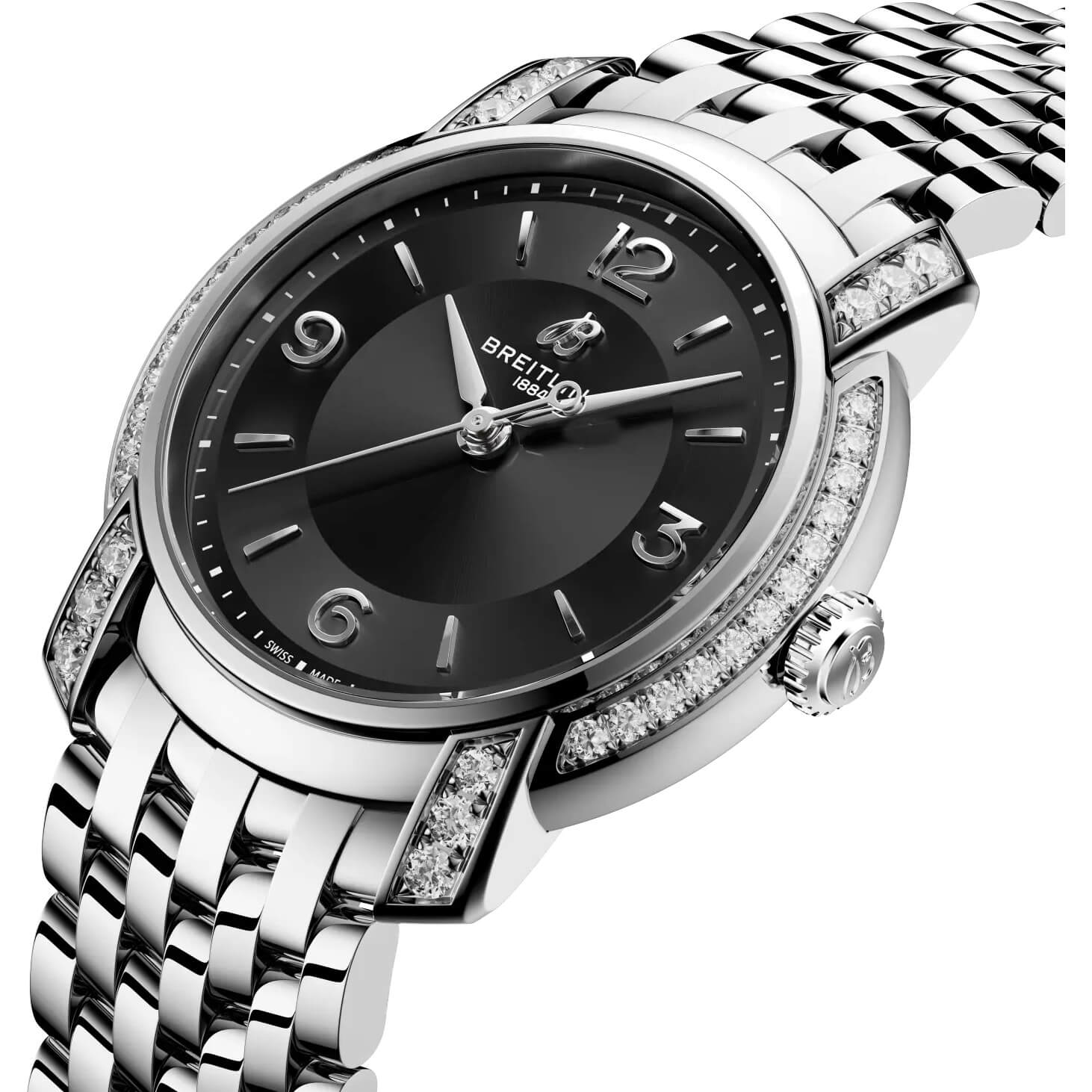 In den 1940er-Jahren führte Willy Breitling die Linie Premier ein und verwandelte den Chronographen vom reinen Präzisionswerkzeug zu einem stilvollen Ausdruck von Eleganz – mit edlen Materialien, feinen Details und einem der ersten Chronographen speziell für Frauen. Seine Frau Beatrice wurde zur Muse und prägte maßgeblich die kreative Richtung der Marke. Mit der neuen Lady Premier bringt Breitling diese zeitlose Eleganz in die Gegenwart: Skulpturale Silhouetten, leuchtende Farbtöne und funkelnde Diamanten prägen die verspielte und gleichzeitig gehobene Designsprache. Minimalistische Ziffern, Rautenzeiger und eine filigrane Krone verleihen der Uhr Schmuckcharakter. Die 32-mm-Editionen überraschen erstmals mit einem konischen, siebenreihigen Chevron-Armband – eine feminine Variante der Premier für Herren – und werden vom COSC-zertifizierten Kaliber 77 SuperQuartz™ angetrieben. Die Lady Premier ist die Uhr für Frauen, die Leichtigkeit, Selbstvertrauen und Lebensfreude ausstrahlen.- Durchmesser
