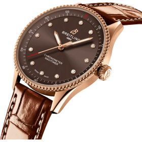 Die Navitimer ist eine der legendärsten Uhren, die je geschaffen wurden – eine wahre Ikone der Uhrmacherkunst. Seit ihrer Einführung im Jahr 1952 steht sie für Präzision, Innovationsgeist und den Mut, neue Wege zu gehen. Was einst als unverzichtbares Instrument für Piloten begann, ist heute ein Zeitmesser mit tiefer Bedeutung für all jene, die ihre persönliche Reise mit Stil und Charakter begleiten möchten. Mit der Navitimer 32 präsentiert Breitling eine elegante Neuinterpretation der Ikone für Liebhaberinnen und Liebhaber kleinerer Durchmesser. Die 32-mm-Variante verzichtet bewusst auf den ikonischen Rechenschieber und überzeugt stattdessen mit einem klaren, harmonischen Zifferblattdesign, das perfekt auf die schlanke Silhouette abgestimmt ist. Das Ergebnis ist eine Navitimer mit schmuckähnlichem Charakter – raffiniert, modern und zeitlos zugleich. Edle Pastelltöne, schimmerndes Perlmutt und der Einsatz rückverfolgbarer Rohstoffe verleihen dieser Uhr eine dezente Eleganz und unterstreichen ihren luxuriösen Anspruch. Das Gehäuse aus 18-karätigem Rotgold sorgt für einen warmen Glanz, während das feine Alligatorlederarmband höchsten Tragekomfort garantiert. Im Inneren arbeitet das thermokompensierte Breitling SuperQuartz™-Kaliber 77, das für außergewöhnliche Ganggenauigkeit steht – ein technisches Meisterwerk, das der legendären Herkunft der Navitimer mehr als gerecht wird.- Durchmesser
