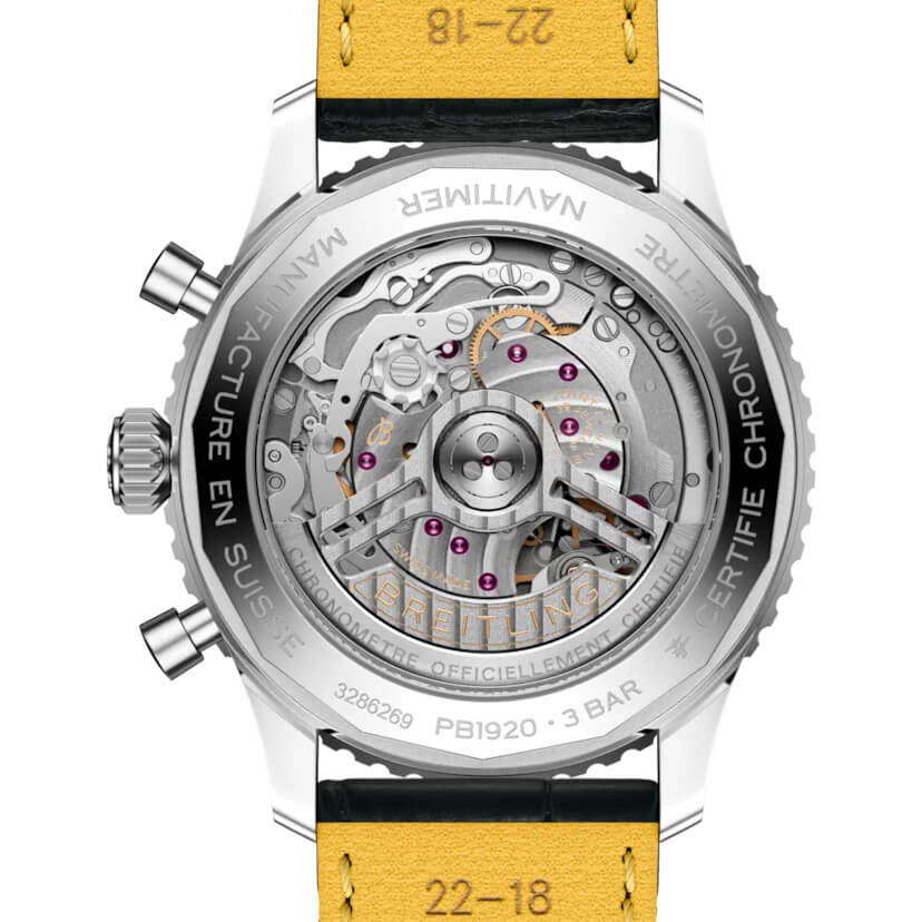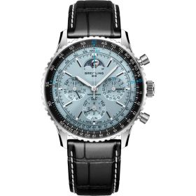 Zum 140-jährigen Jubiläum präsentiert Breitling das Kaliber B19 – das erste exklusive Chronographenwerk mit ewigem Kalender der Marke. Dieser Meilenstein treibt die Sonderedition der Navitimer an, eine Uhr mit einer außergewöhnlichen Geschichte. Ursprünglich 1952 für die Aircraft Owners and Pilots Association (AOPA) entwickelt, vereinte die Navitimer einen Chronographen mit dem patentierten runden Rechenschieber – ein unverzichtbares Instrument für Piloten. Doch ihre Beliebtheit reicht weit über die Luftfahrt hinaus: Sportler, Musiker und sogar Astronauten trugen sie. 1962 wurde sie zur ersten Schweizer Armbanduhr im Weltraum. Diese Jubiläumsedition verbindet Tradition mit Innovation: Ein Edelstahlgehäuse, eine Platinlünette, ein eisblaues Zifferblatt und das herausragende Kaliber B19 – ein automatischer Chronograph mit ewigem Kalender. Ein ikonisches Erbe, neu interpretiert für die Gegenwart.- Durchmesser
