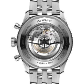 Von den ersten mutigen Starts bis zur Geburtsstunde des kommerziellen Flugverkehrs ist die Geschichte von Breitling untrennbar mit der Luftfahrt verbunden. In den 1930er-Jahren machte sich das Breitling Huit Aviation Department mit der Entwicklung von Präzisions-Cockpituhren einen Namen. Zwei Jahrzehnte später stellte es ein weiteres neuartiges Fluginstrument vor – nun allerdings in tragbarer Form: die Ref. 765 AVI. Diese wegweisende Fliegeruhr schuf den technischen Hintergrund für die heutige Super AVI, eine Kollektion, die von der Robustheit der berühmten frühen Flugzeuge inspiriert ist. Die Super AVI Tribute to Vought F4U Corsair würdigt eine dieser Legenden. Als Marineflugzeug im Zweiten Weltkrieg musste die Corsair schwierige Starts und Landungen auf Flugzeugträgern und entlegenen Landepisten bewältigen. Dabei kam es zuallererst auf Geschwindigkeit und Auftrieb an, und das Flugzeug meisterte diese Herausforderung mit Bravour: Es war das erste einsitzige Kampfflugzeug, das die Geschwindigkeitsmarke von 640 km/h knackte und darüber hinaus eine herausragende Steigrate aufwies. Ihr «Knickflügel»-Design, der überdimensionierte Propeller und die charakteristische blaue Lackierung machten sie zu einem Wahrzeichen der Luftfahrtgeschichte. Als echte Pilotenuhr, die dafür konzipiert wurde, den Herausforderungen eines Vintage-Cockpits standzuhalten, verfügt die Super AVI Tribute to Vought F4U Corsair über grosse, hervorragend ablesbare arabische Ziffern auf dem Zifferblatt und der Lünette. Die überdimensionierte Krone und die geriffelte Lünette am robusten 46-mm-Gehäuse bieten auch mit Pilotenhandschuhen optimale Griffigkeit. Das Kalbslederarmband mit Ziernaht erinnert optisch an die klassischen Fliegerjacken, während das optionale Edelstahlarmband eine elegante Alternative bietet. Piloten und andere Reisende werden die Möglichkeit schätzen, über die 24-Stunden-Markierung auf der Innenlünette und den GMT-Zeiger mit roter Spitze eine zweite Zeitzone anzuzeigen. Angetrieben wird die Super AVI von einem COSC-zertifizierten Breitling-Manufakturkaliber B04, das eine Gangreserve von etwa 70 Stunden bietet.- Durchmesser