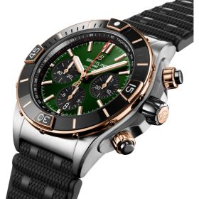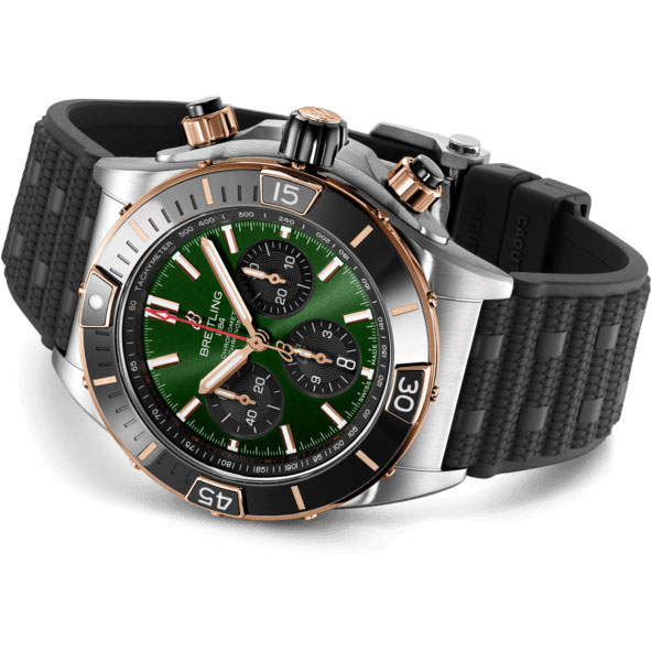 Die leistungsstarke Breitling Uhr für alle Gelegenheiten. Die Super Chronomat wurde von der Original-Chronomat aus den 1980er-Jahren inspiriert, die von Breitling für die tollkühnen Piloten von Kunstflugstaffeln entwickelt wurde. Als wohl auffallendstes Modell dieser Kollektion besticht die Super Chronomat durch mehrere Keramikeinsätze – auf der Lünette, den Chronographendrückern und der Krone – und durch ein Kautschukarmband in Rouleaux-Optik. Bei aller Sportlichkeit steht diese Allzweckuhr Ihrem Sinn für Stil aber nicht im Weg.- Durchmesser