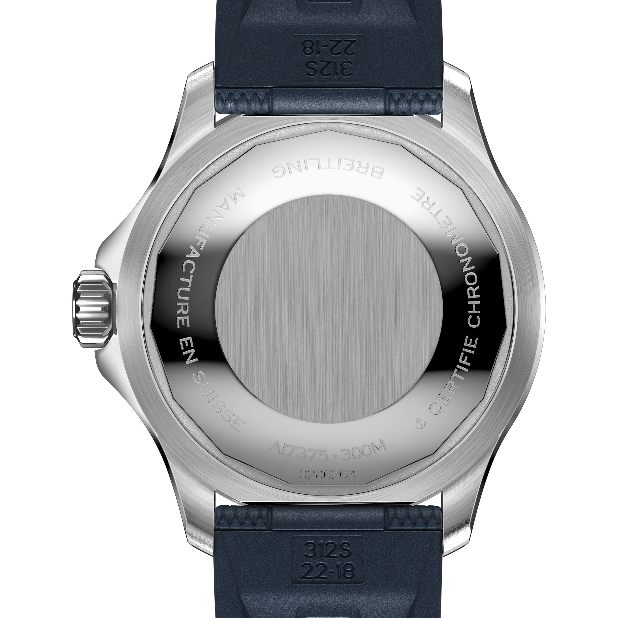 Abgesehen davon, dass sie gut aussieht, ist die neue Superocean auch ein technisches Wunderwerk. Breite Zeiger und Indexe, die mit lumineszierendem Super-LumiNova® beschichtet sind, ermöglichen eine hervorragende Ablesbarkeit unter Wasser. Mit einer Wasserdichtigkeit von 300 Metern (30 Bar) verdreifacht diese Uhr die Mindestanforderung für Taucheruhren. Diese Version der Superocean Automatic mit 42 mm Durchmesser erscheint mit Zifferblatt in dunkelblau und einem farblich passenden Kautschukarmband, welches über eine Faltschließe verfügt, die Mikroanpassungen von bis zu 15 mm ermöglicht, um das Tragen über z. B. Taucheranzügen zu erleichtern. Die kratzfeste mit Keramik eingelegte Lünette der Superocean wird niemals verschleißen oder verblassen. Aus Sicherheitsgründen ist die Lünette bei der 36-, 42- und 44-mm Version unidirektional drehbar. Die Uhr ist außerdem stoß-, sand- und salzwasserfest. Das automatische Breitling-Kaliber 17 erscheint mit einer zweijährigen Garantie und einer Gangreserve von ca. 38 Stunden. Wie bei allen Redesigns von Breitling gleicht die neue Superocean die Nostalgie ihrer Linie perfekt mit einem frischen neuen Look aus. Bei diesem Design ist für jeden etwas dabei. Sammler werden den starken Einfluss der Zeitlupe erkennen, Wassersportbegeisterte werden ihre technischen Eigenschaften zu schätzen wissen und Stilbewusste werden sich für ihre Vielseitigkeit von Tag zu Nacht, Strand und Konferenzraum interessieren.