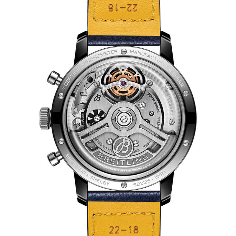 Die 1960er Jahre waren ein Jahrzehnt voller Experimente, Spaß, Freiheit und Energie. Willy Breitling spürte den pulsierenden Zeitgeist und kreierte den unkonventionellen Chronographen Top Time, um diesen Schwung einzufangen. Diese temperamentvolle Tradition setzt sich bis heute fort, indem Breitling mit einigen der coolsten Namen der Automobilbranche zusammenarbeitet. In den frühen 1960er Jahren entwarf der Le-Mans-Sieger Carroll Shelby die Cobra, die Erfolg sowohl bei Sportwagenfans als auch auf der Rennstrecke hatte. Die Top Time B21 Shelby Cobra ist eine Hommage an dieses Oldtimer-Modell. Mit den Farben des Originals, einem perforierten Lederarmband, einer Tachymeterskala und kontrastierenden "Squircle"-Ziffernblättern, die an alte Armaturenbretter erinnern, verkörpert sie das Gefühl dieser Ära. Im Inneren des Gehäuses aus Keramik und Titan arbeitet stolz der außergewöhnliche Chronograph Tourbillon B21 von La Joux-Perret.- Durchmesser