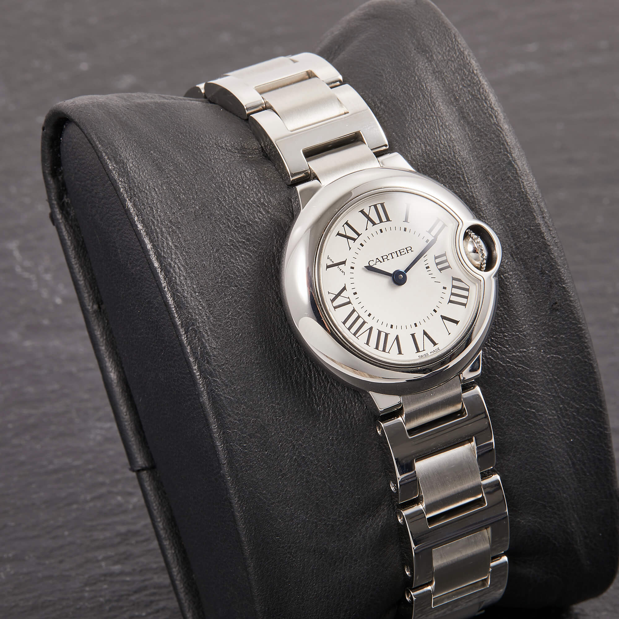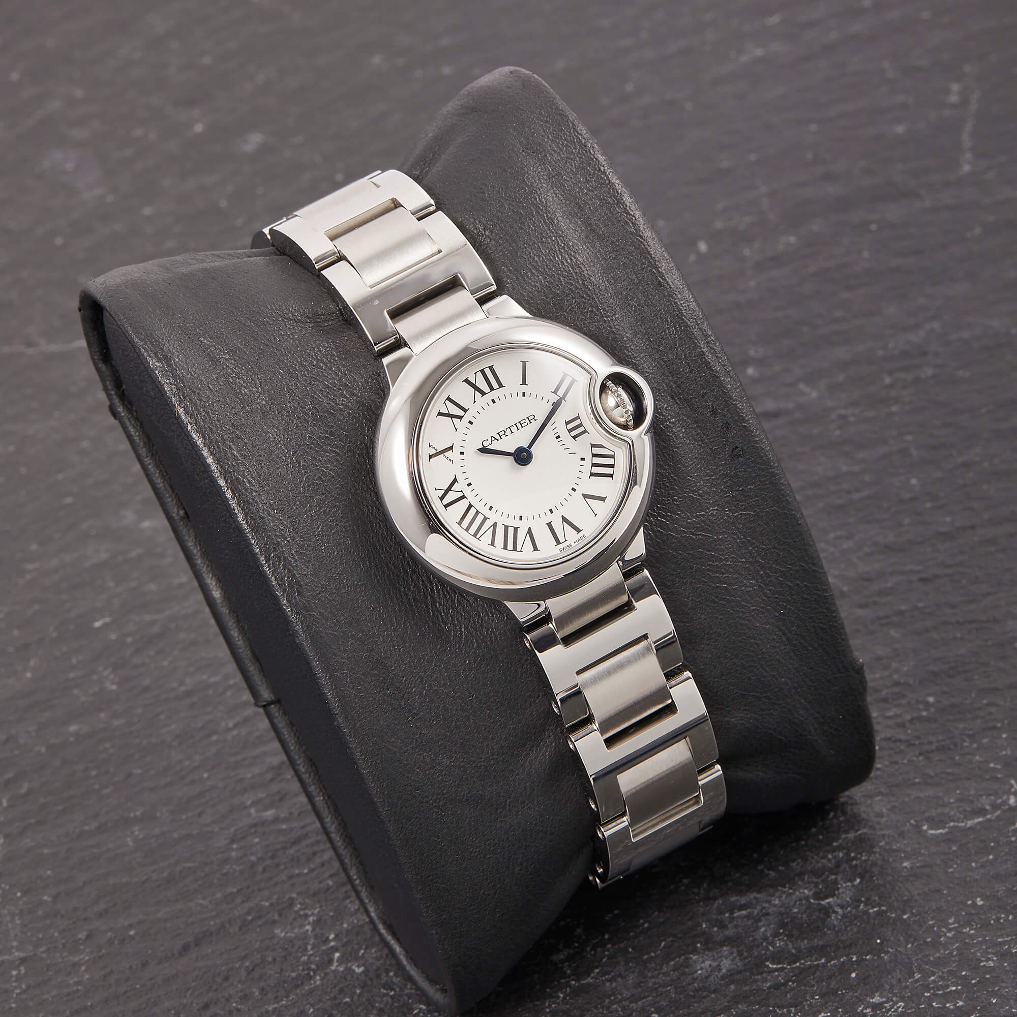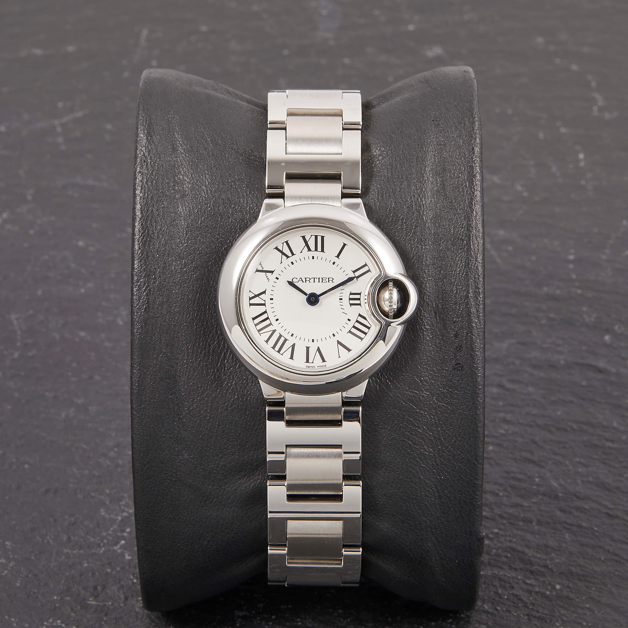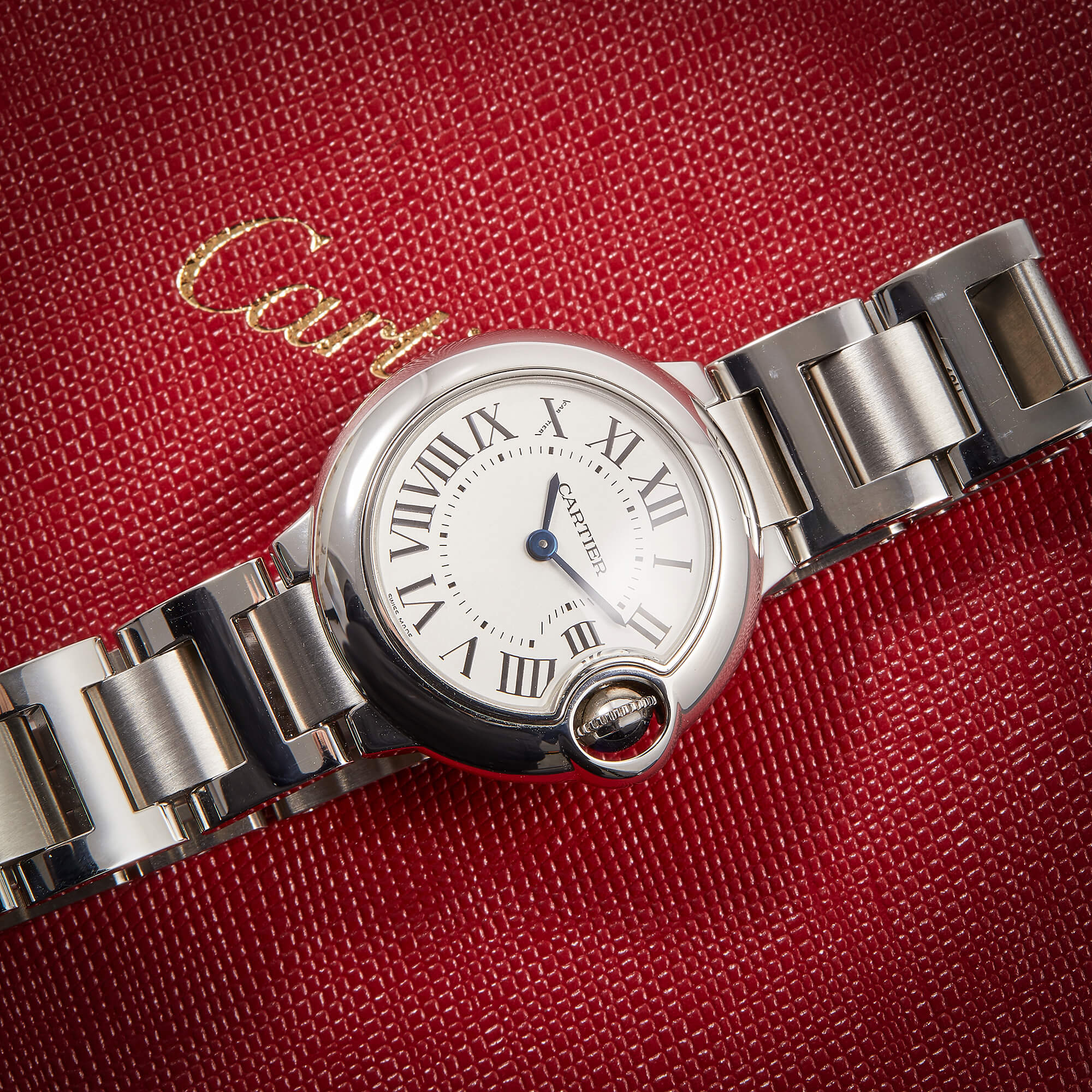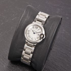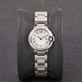 Die Cartier Ballon Bleu in Stahl, Referenz 3009 am Stahlband, besticht durch ihr klassisch-geschwungenes Gehäuse und das elegante Zifferblatt mit römischen Indizes. Sie vereint zeitlose Cartier-Ästhetik mit hoher Alltagstauglichkeit und ist ein stilvoller Begleiter für jeden Anlass.- Durchmesser
