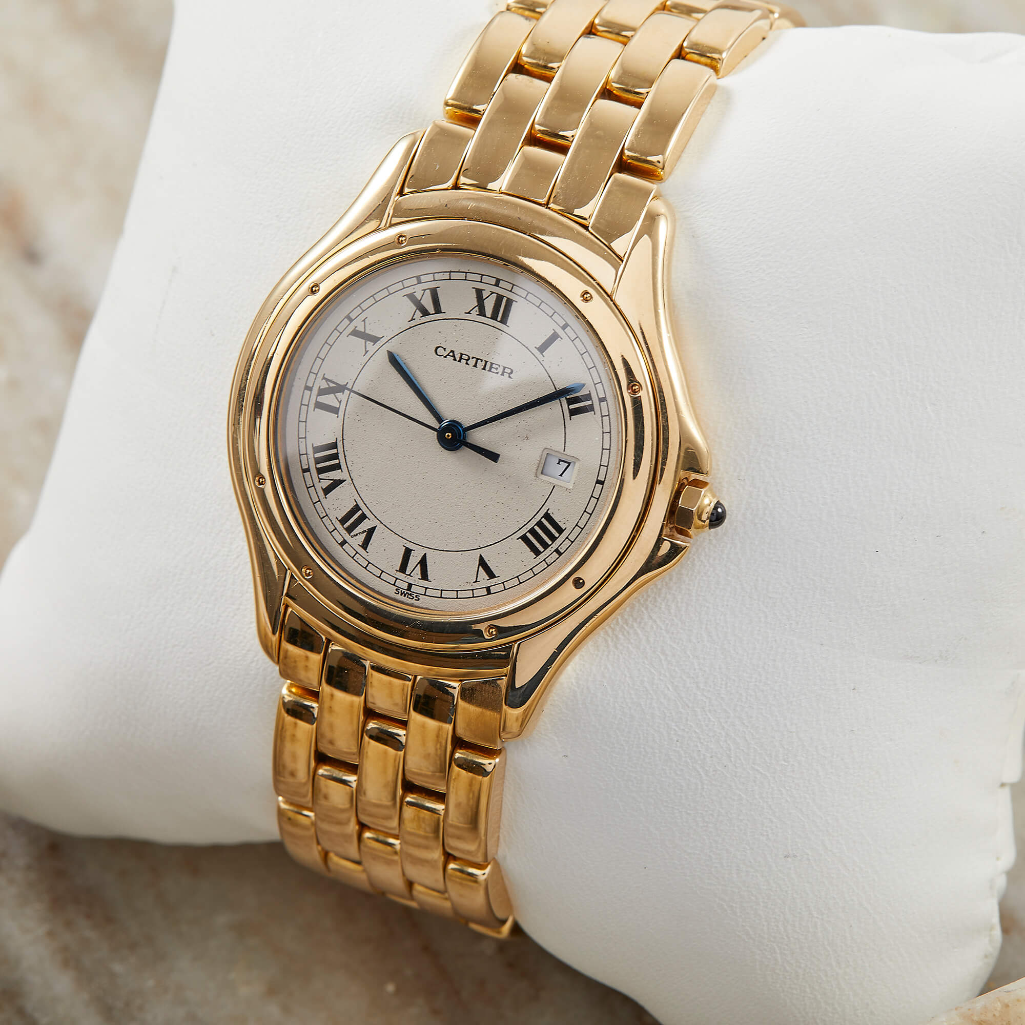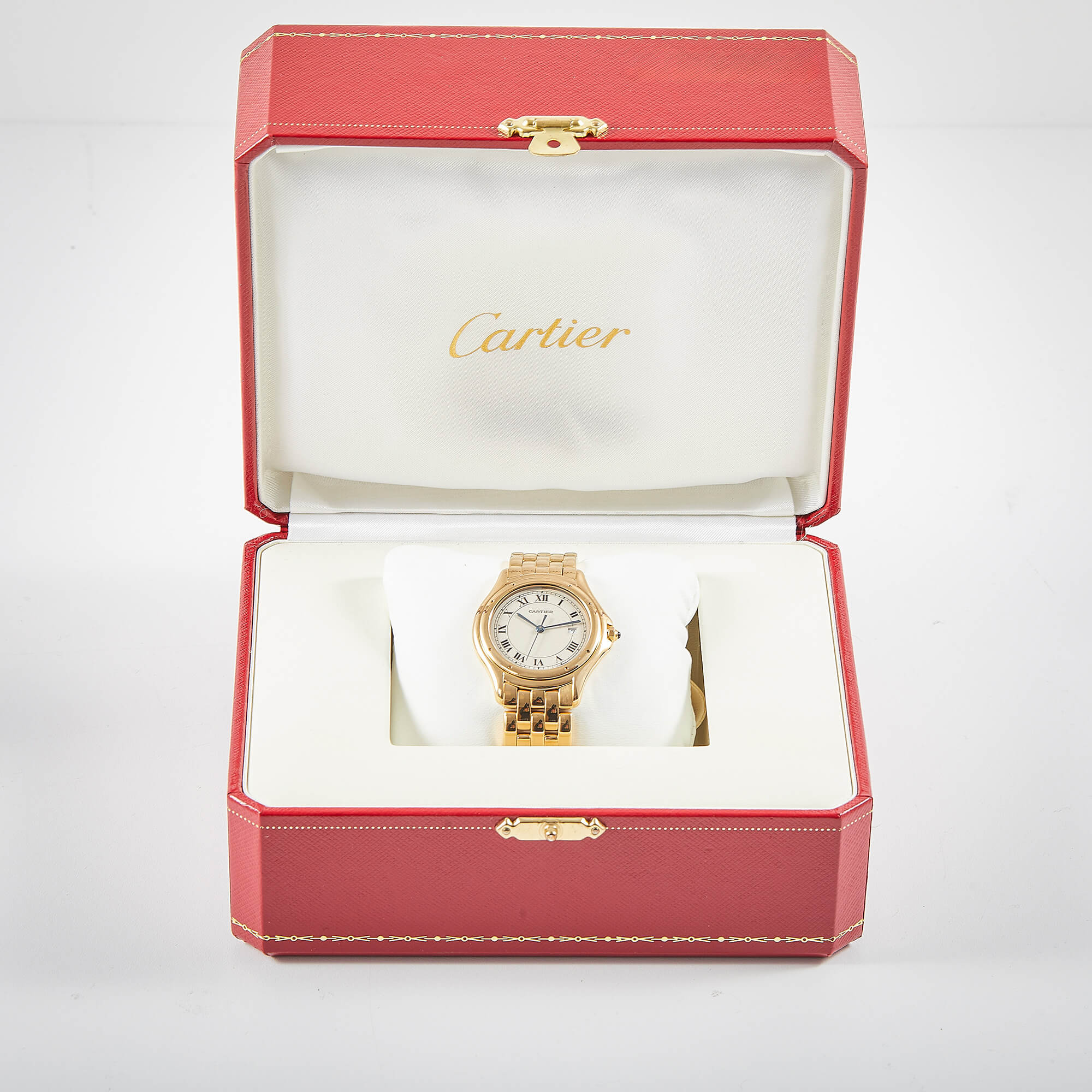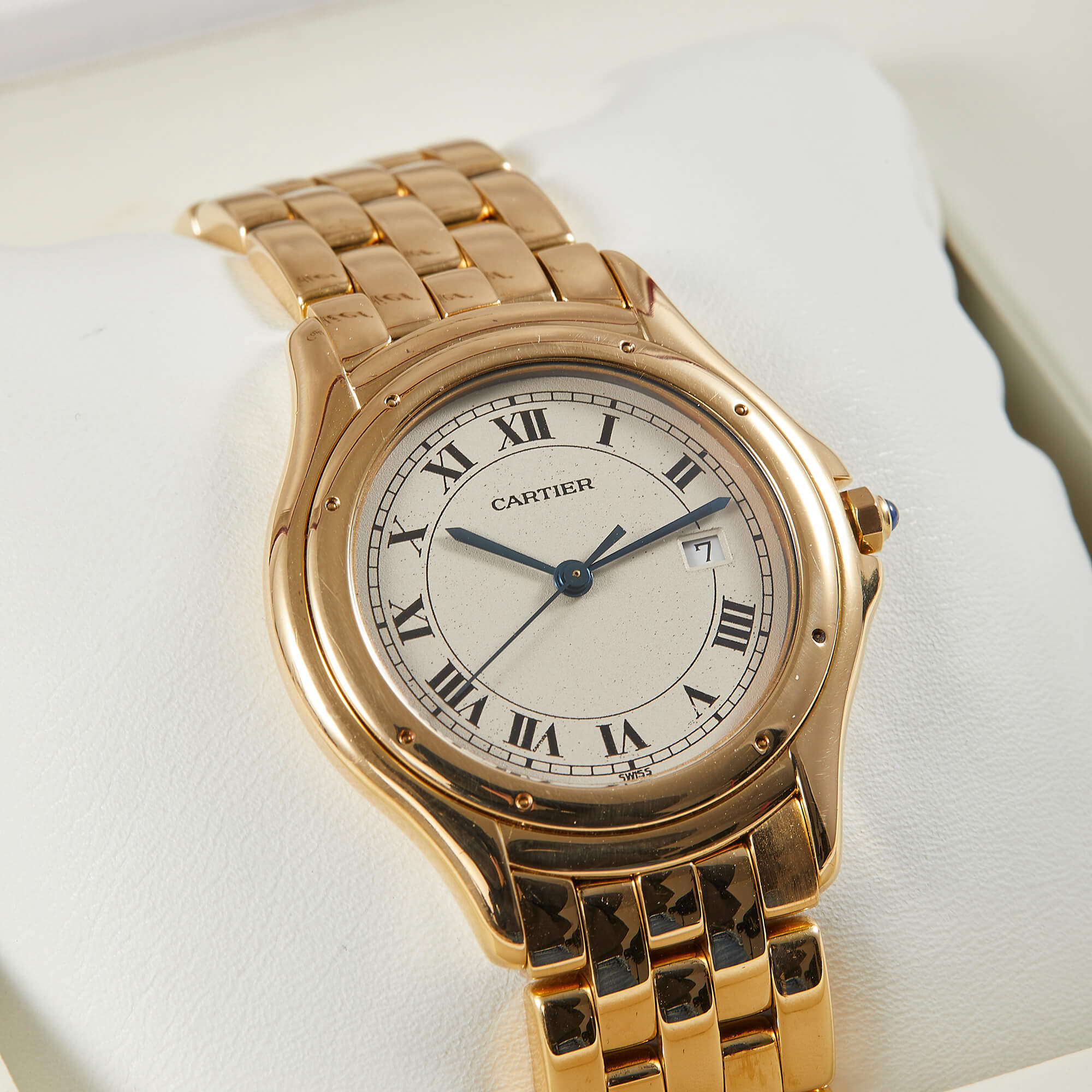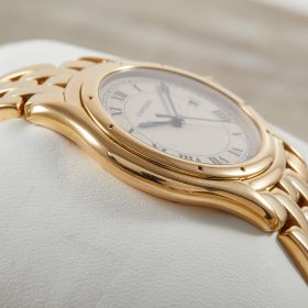 Die Cartier Cougar Referenz 887904 besticht mit einem eleganten Gelbgoldgehäuse und passendem Goldband. Mit einem Durchmesser von 33 mm verbindet sie zeitlose Ästhetik und dezente Eleganz – ein wahrer Klassiker aus dem Hause Cartier.