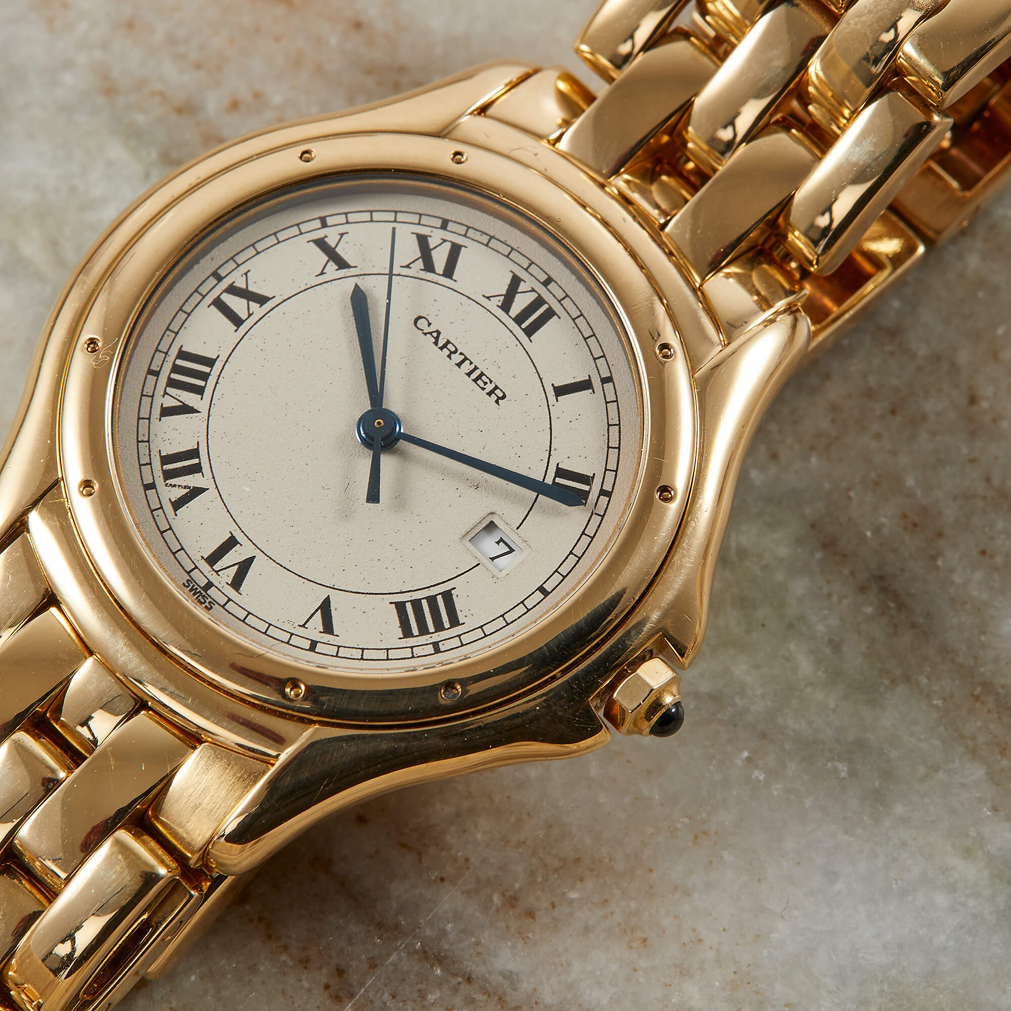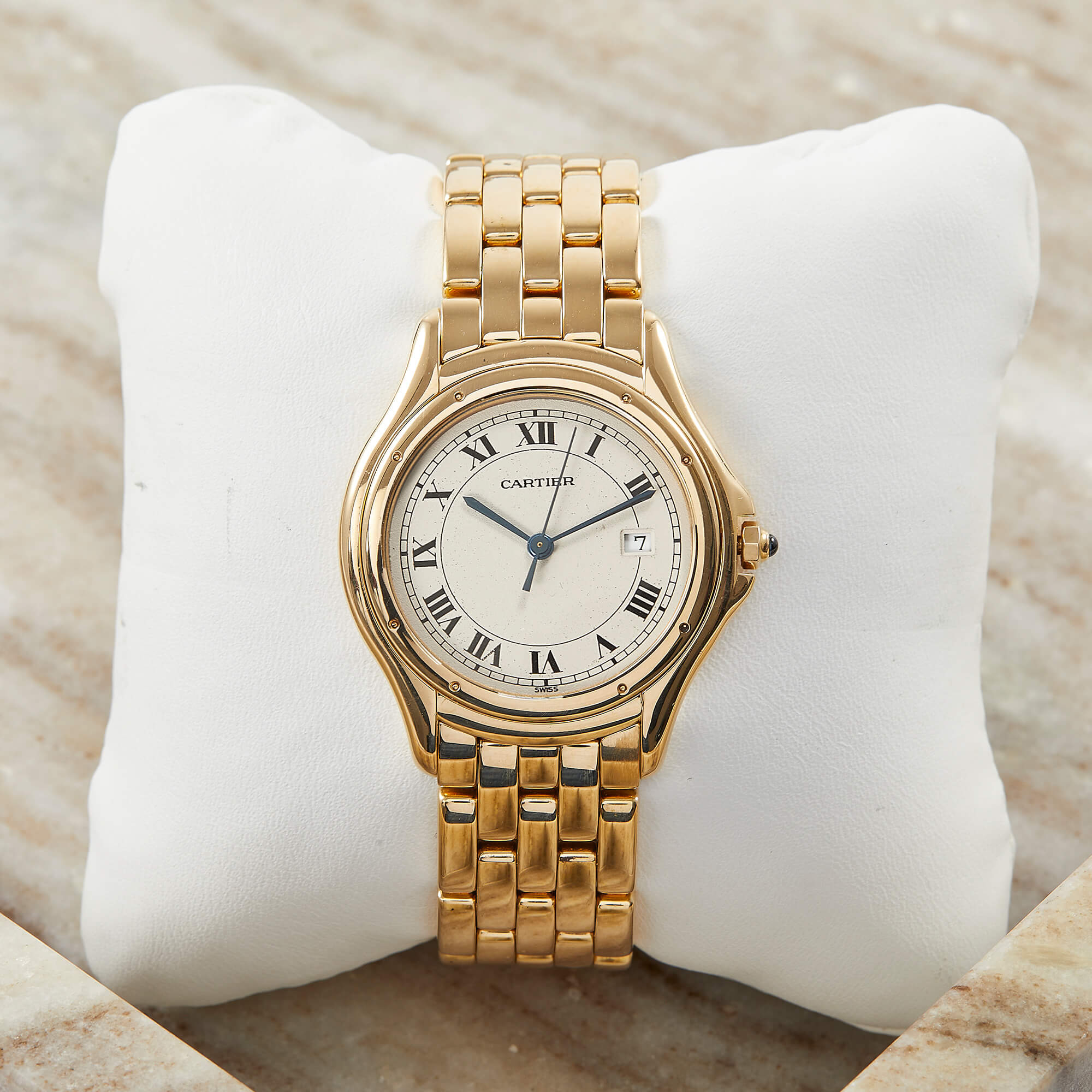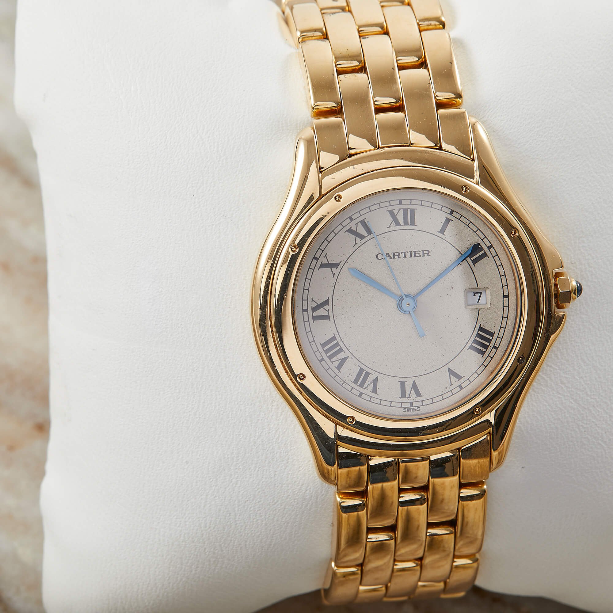 Die Cartier Cougar Referenz 887904 besticht mit einem eleganten Gelbgoldgehäuse und passendem Goldband. Mit einem Durchmesser von 33 mm verbindet sie zeitlose Ästhetik und dezente Eleganz – ein wahrer Klassiker aus dem Hause Cartier.