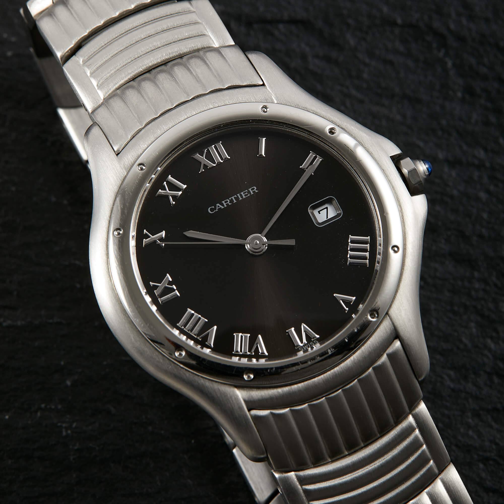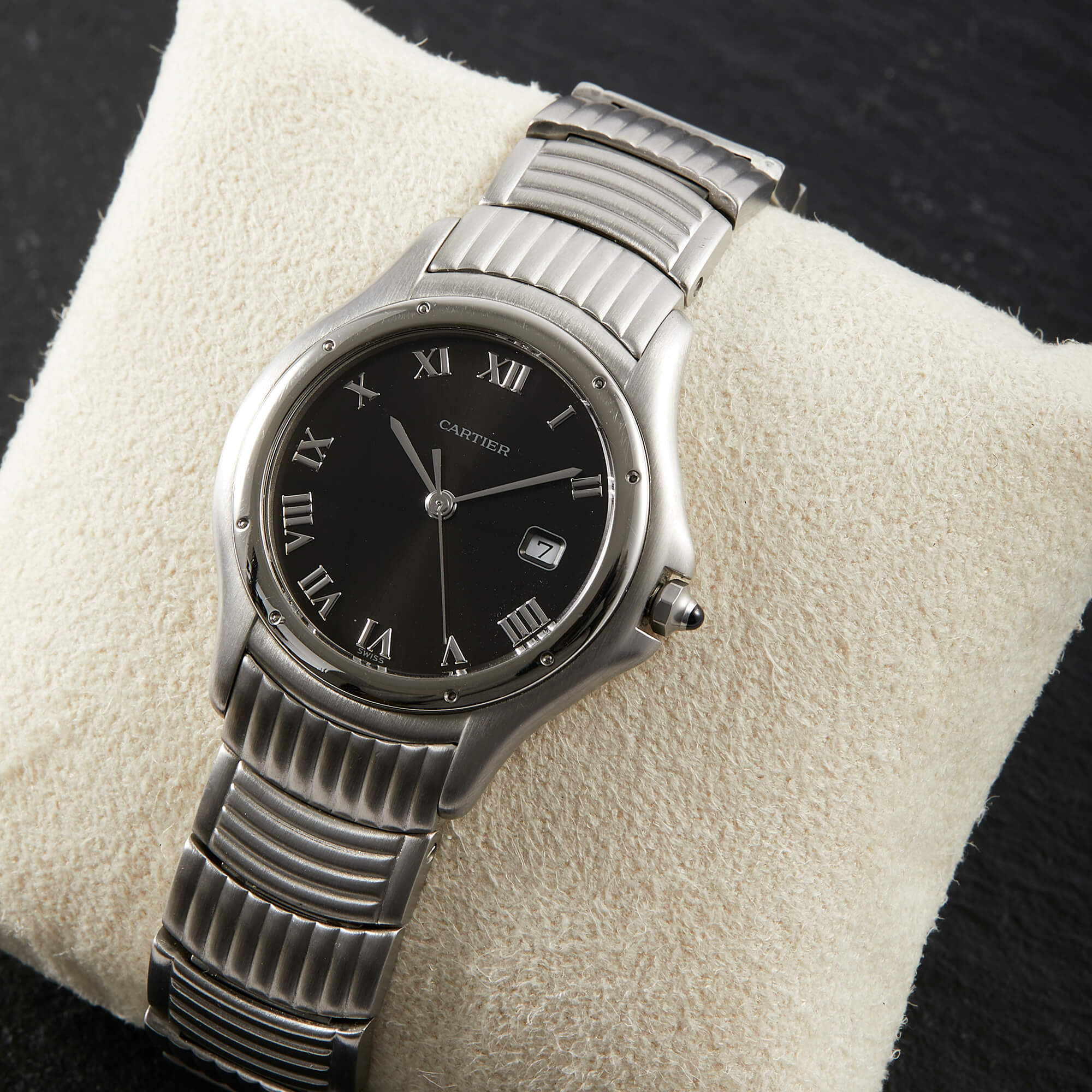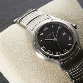 Die Cartier Cougar Referenz 987904C ist ein elegantes Modell, das komplett in Edelstahl gefertigt ist. Mit ihrer polierten Lünette und dem wunderschönen Edelstahlarmband in besonderem Stil, strahlt sie zeitlose Eleganz und Sportlichkeit aus. Verbaut ist hier ein schwarz-graues Sonderzifferblatt. Diese Uhr ist ein perfektes Beispiel für die Kombination von Luxus und Funktionalität, ideal für stilvolle Träger und Trägerinnen.