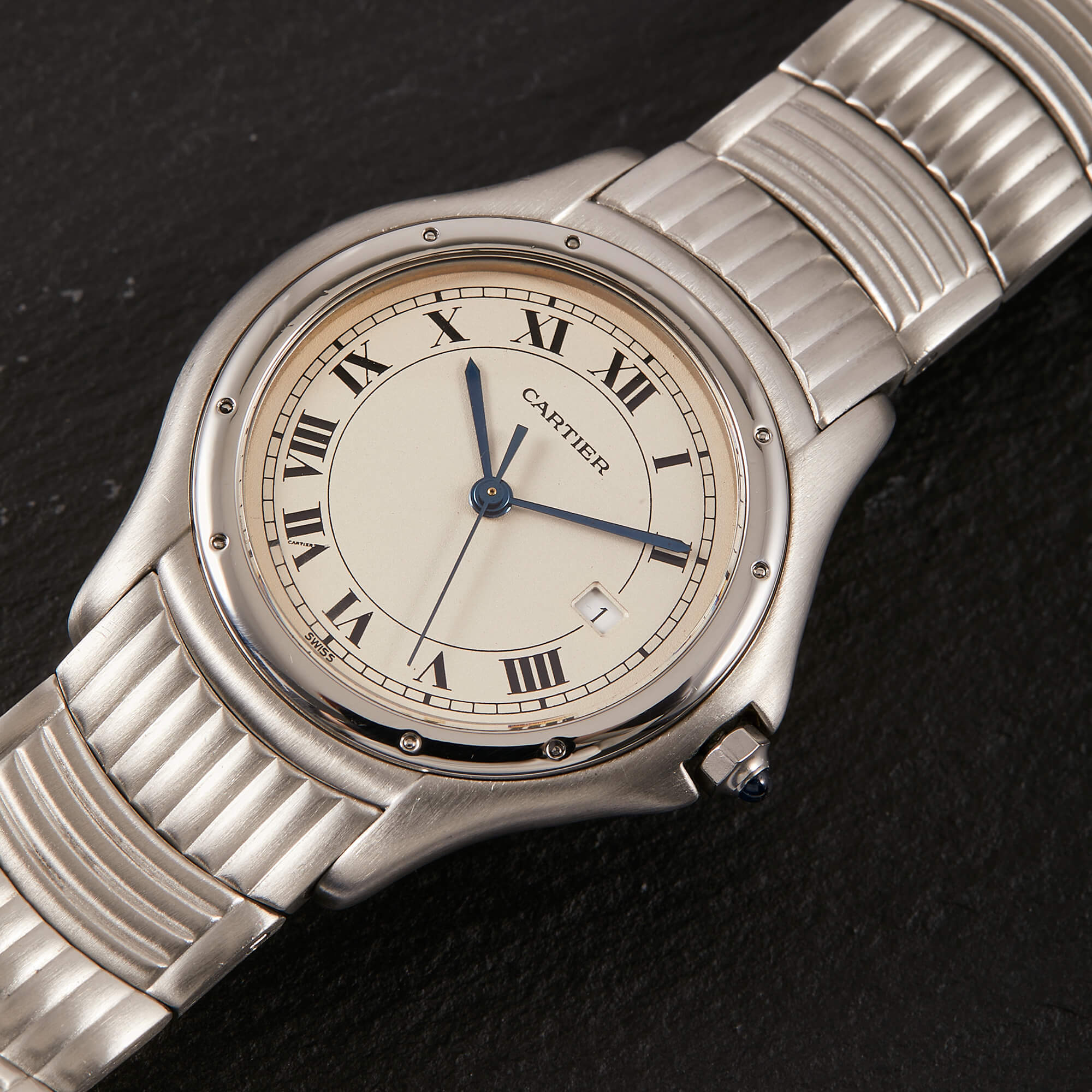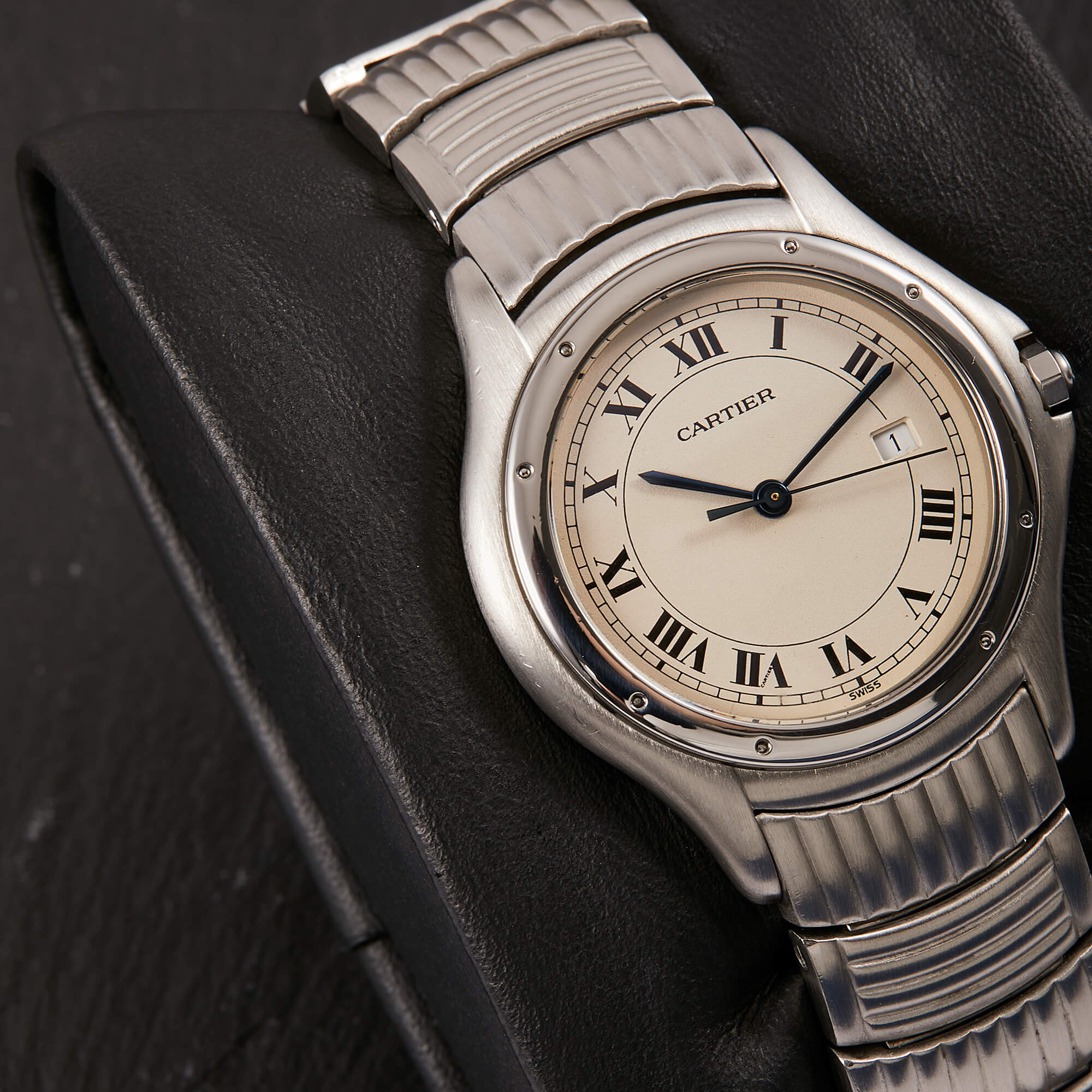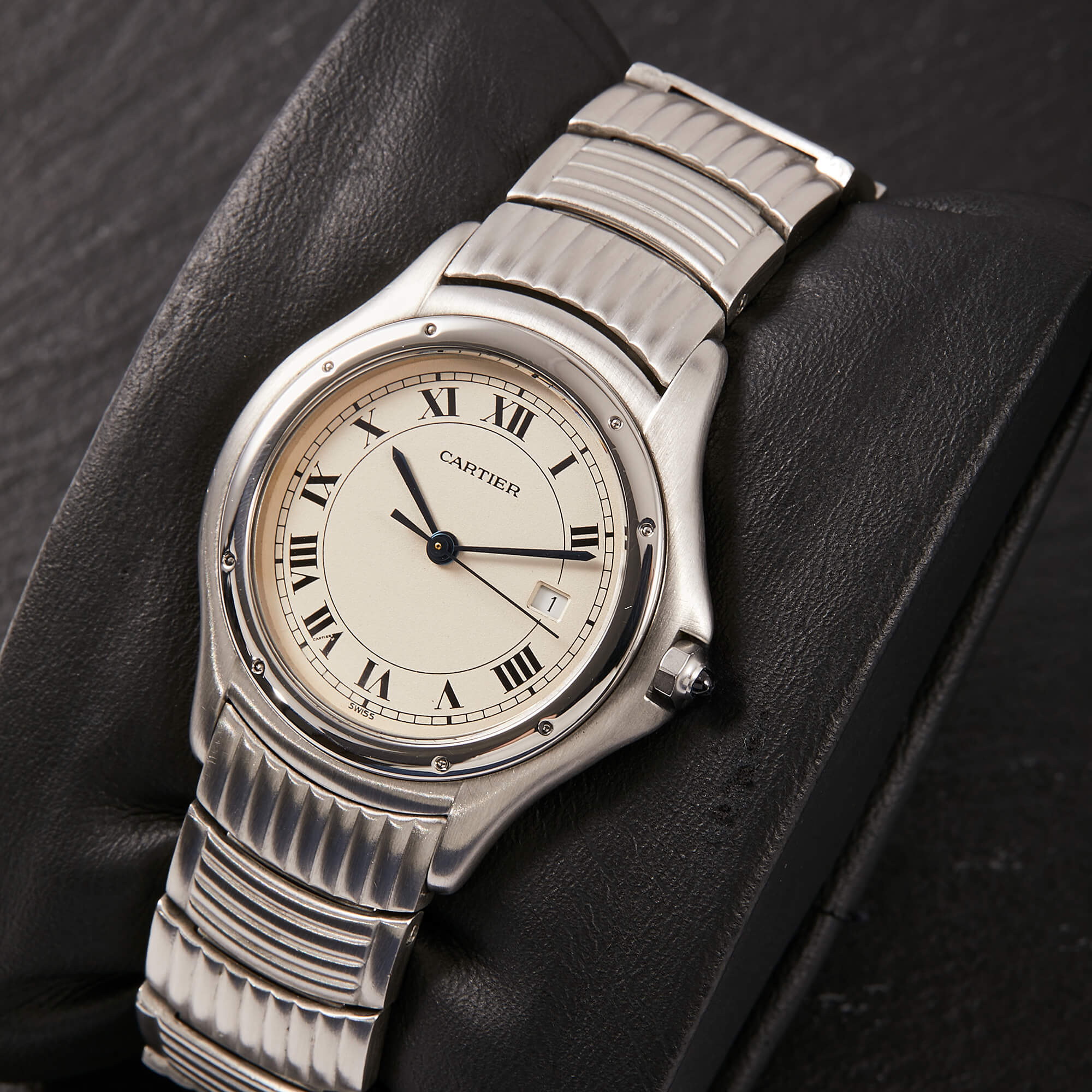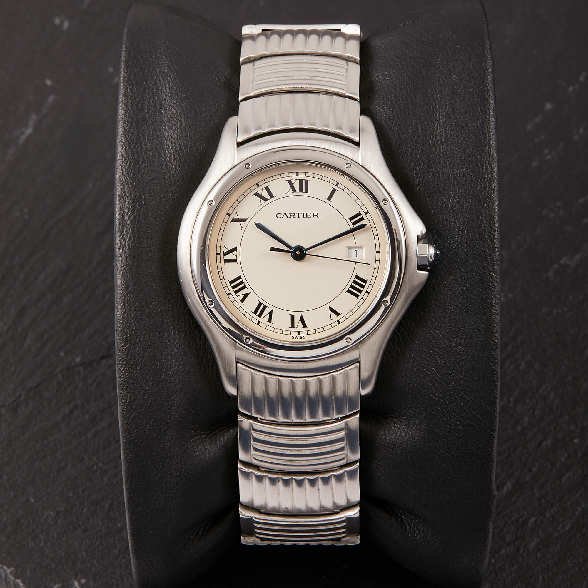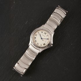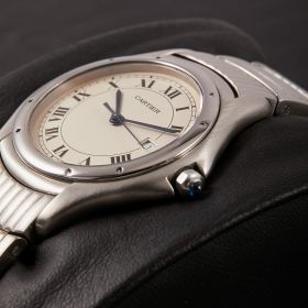 Die Cartier Cougar Referenz 987904C ist ein elegantes Modell, das komplett in Edelstahl gefertigt ist. Mit ihrer polierten Lünette und dem wunderschönen Edelstahlarmband in besonderem Stil, strahlt sie zeitlose Eleganz und Sportlichkeit aus. Verbaut ist hier weißes Zifferblatt mit römischen Indizes. Diese Uhr ist ein perfektes Beispiel für die Kombination von Luxus und Funktionalität, ideal für stilvolle Träger und Trägerinnen.