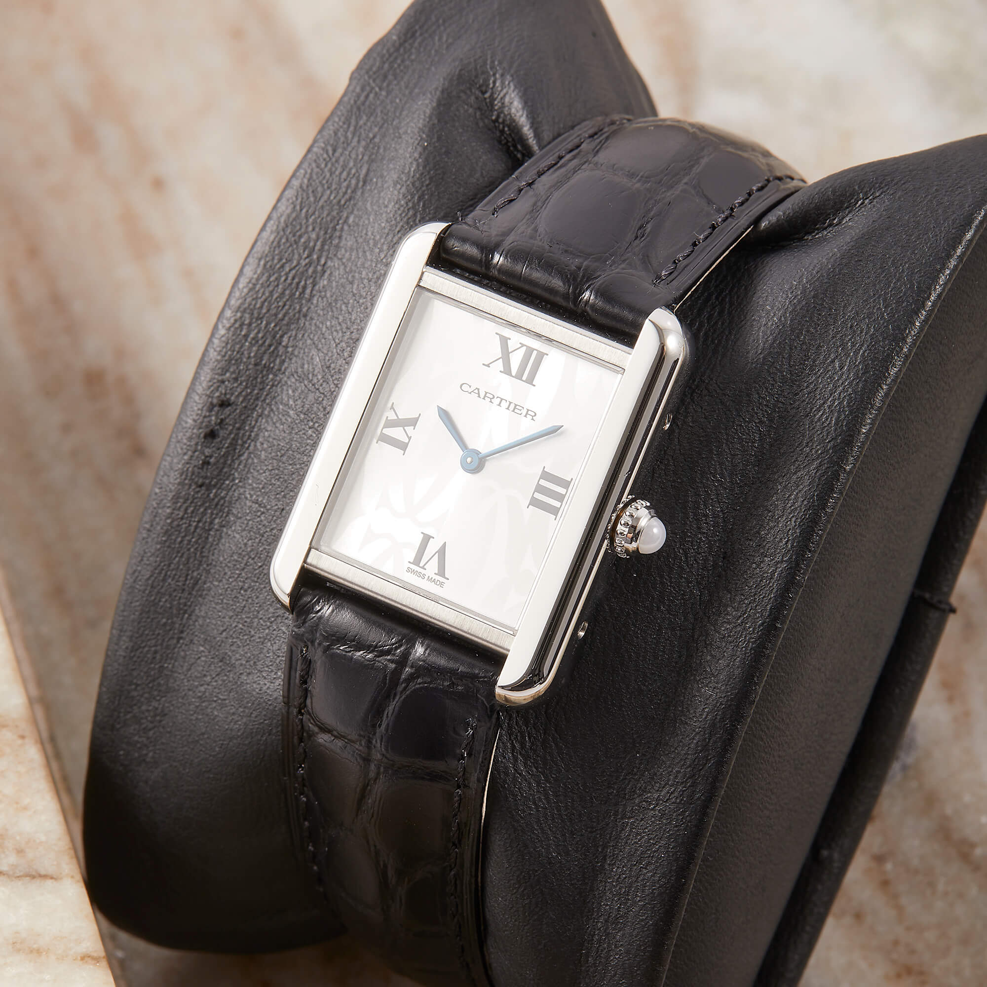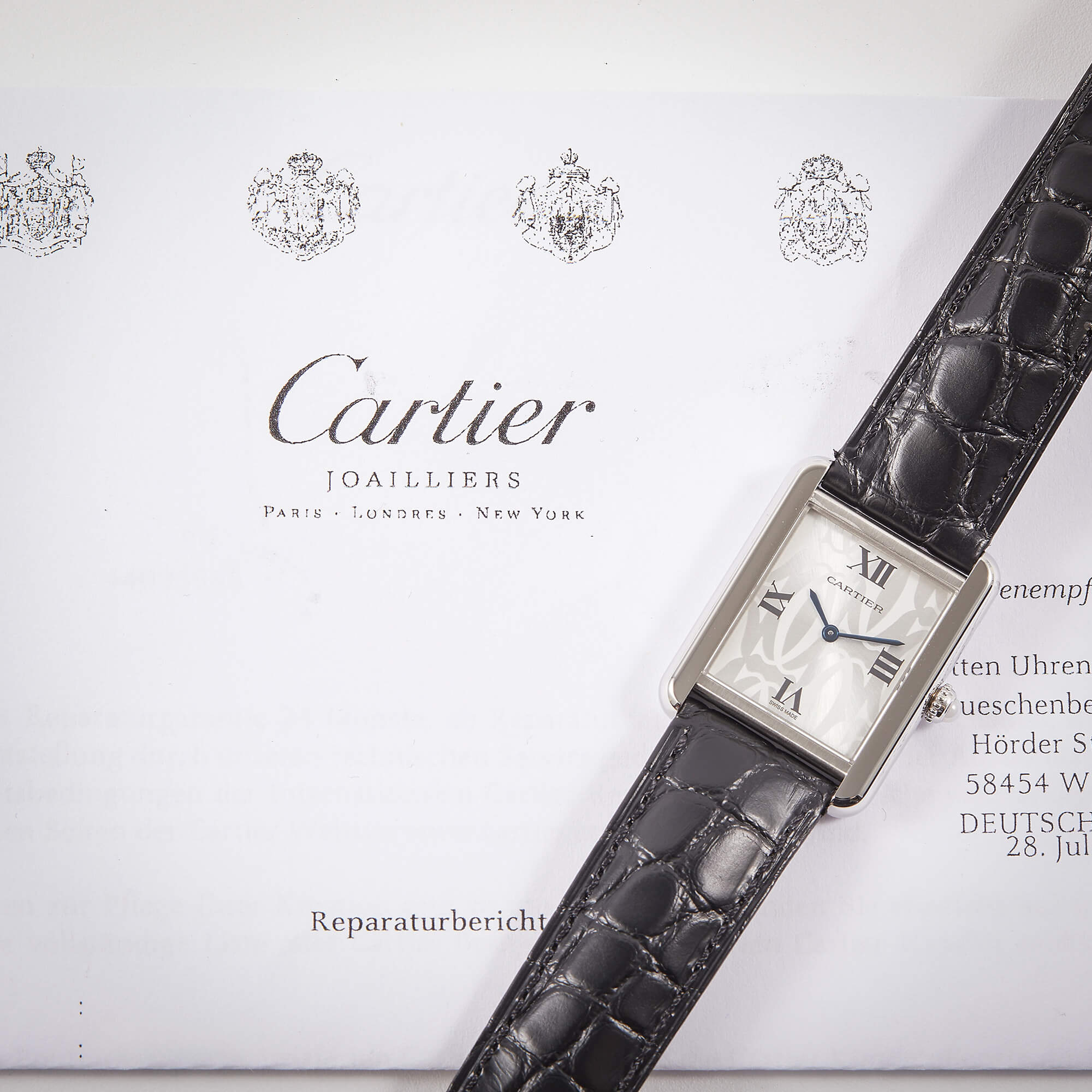 Die Cartier Tank Solo Referenz 2716 überzeugt mit ihrem ikonischen rechteckigen Gehäuse und einem seltenen Sonderzifferblatt, das der Uhr eine besondere Note verleiht. Sie wurde kürzlich einem frischen Service direkt bei Cartier unterzogen und befindet sich technisch sowie optisch in einwandfreiem Zustand. Ein stilvoller Klassiker mit besonderem Detail.- Durchmesser