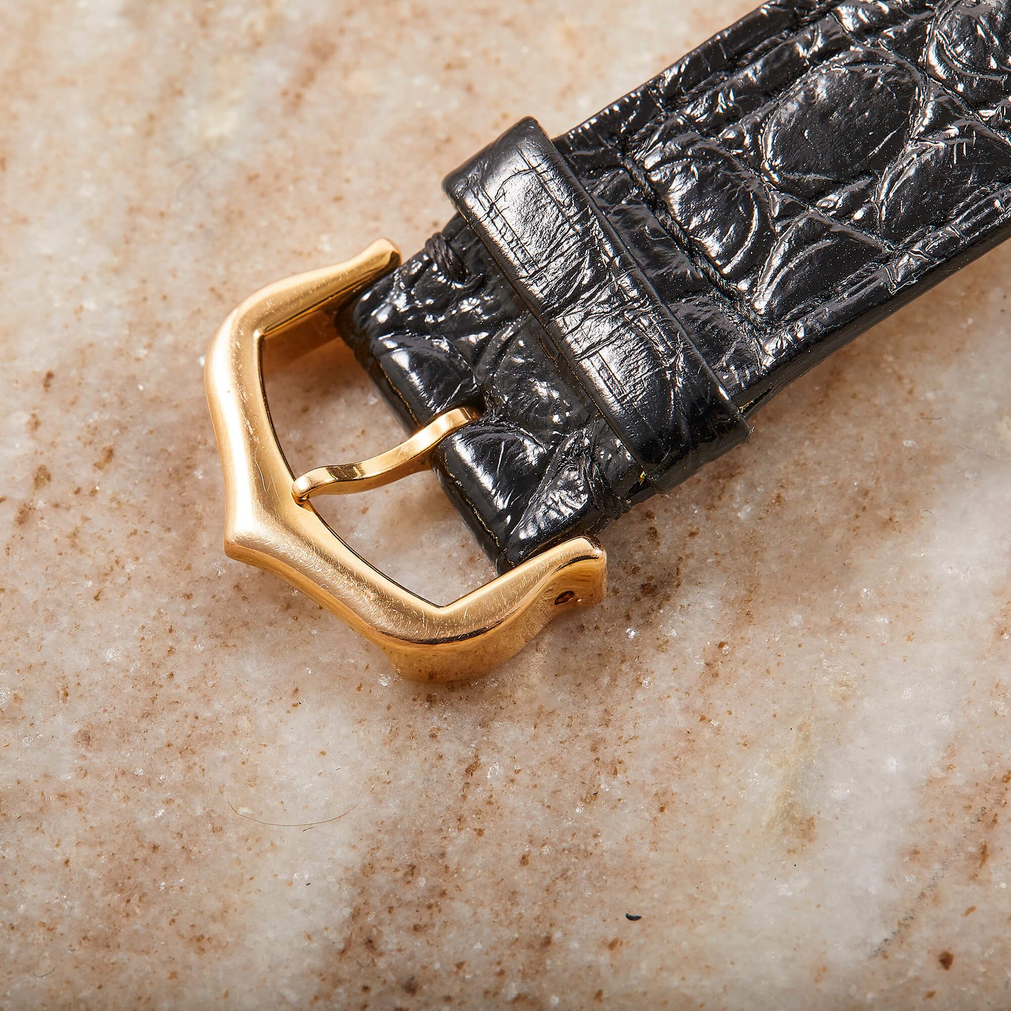 Die Cartier Tank Ref. 3168 besticht durch ihr elegantes Gelbgoldgehäuse mit den klassischen Abmessungen von 24 mm x 31 mm, die zeitlose Raffinesse verkörpern. Abgerundet wird das Design durch eine Gelbgold-Dornschließe, die perfekt zum edlen Gesamtbild passt. Sie wird mit originalen Garantieunterlagen ausgeliefert.
