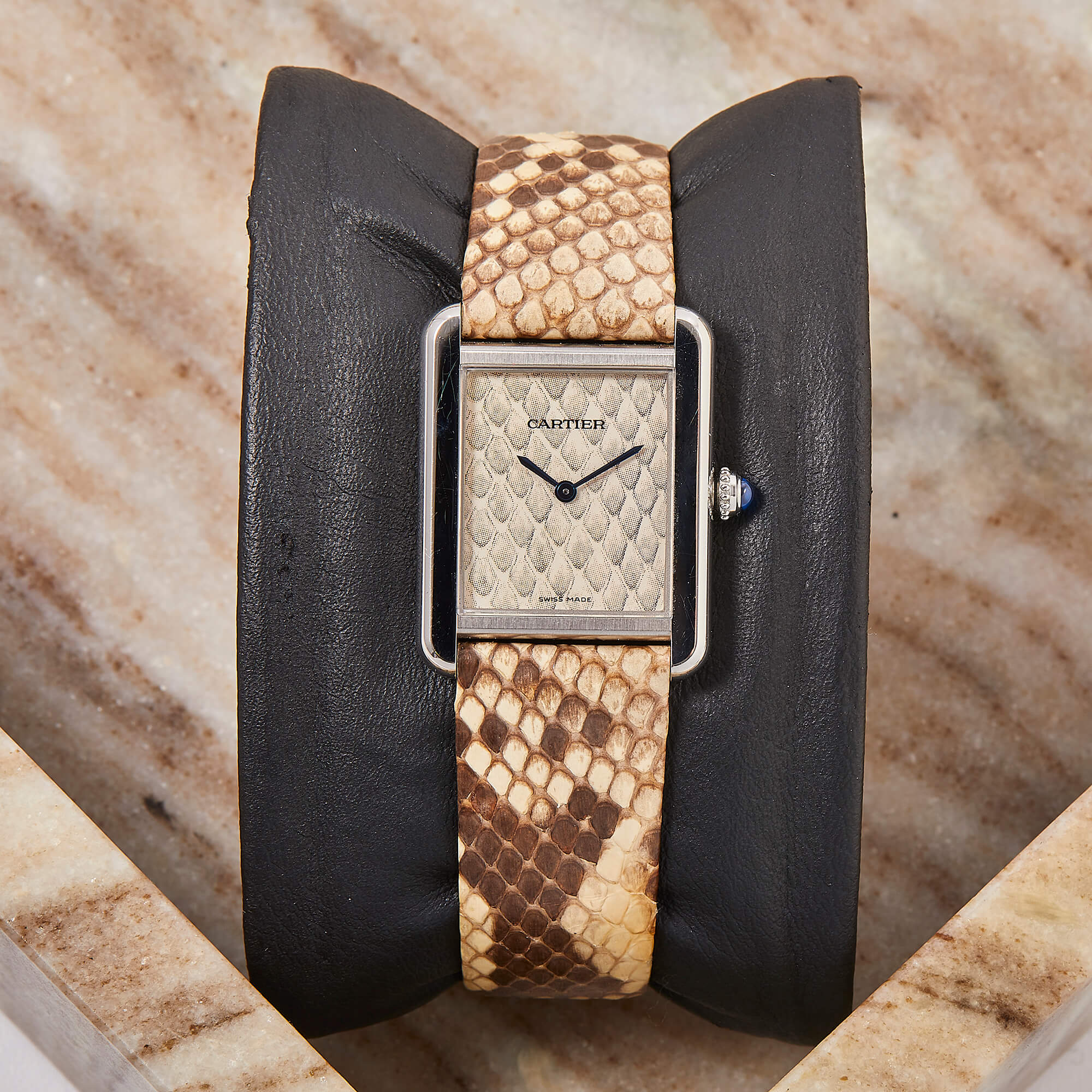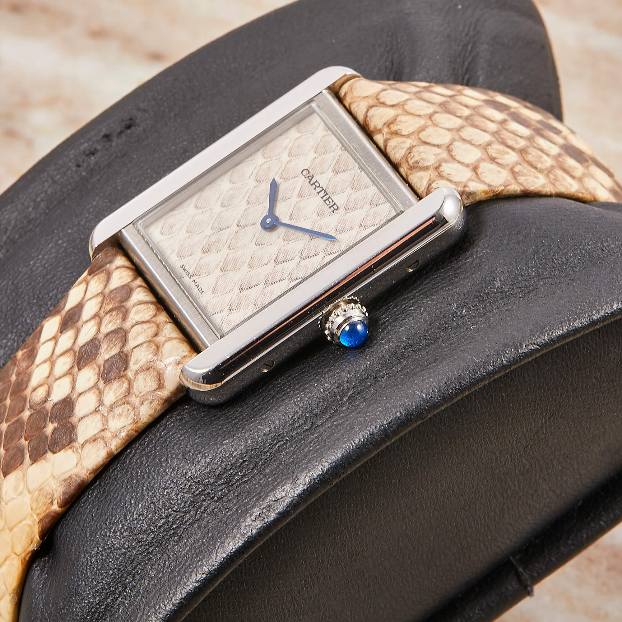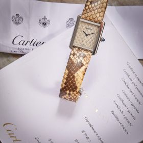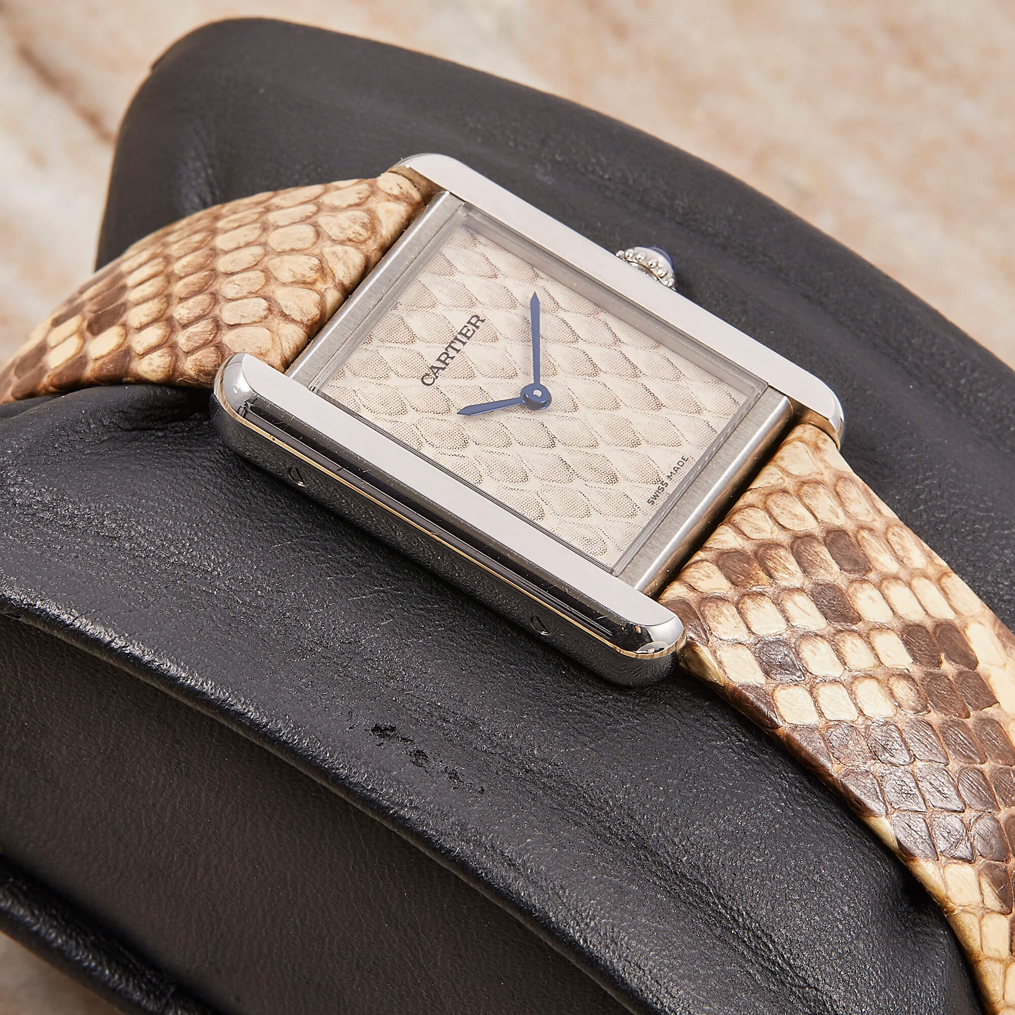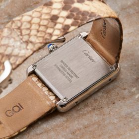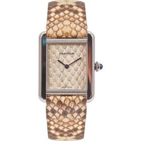Die Cartier Tank Solo Ref. 3170 steht für zeitlose Eleganz und ikonisches Design. In dieser Variante mit poliertem Edelstahlgehäuse und Lederband und Zifferblatt in Pythonoptik strahlt sie Individualismus aus. Die Uhr befindet sich in schönem, gepflegtem Zustand und kommt mit originaler Garantiekarte, sowie frischem Service im Juli 2025.- Durchmesser