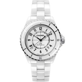 Die neue CHANEL J12 White mit 38 mm Durchmessern. Als Ikone der modernen Uhrmacherkunst ist der Zeitmesser ausgestattet mit dem neuen 12.1 Kaliber. Die legendäre CHANEL Kollektion überzeugt mit einem Gehäuseboden aus Saphirglas. Krone aus Edelstahl verschraubt mit Cabochon aus weißer extrem widerstandsfähiger Keramik, Lünette unidrektional drehbar aus Edelstahl, mechanisches Uhrwerk mit Automatikaufzug.Produktspezifikationen
