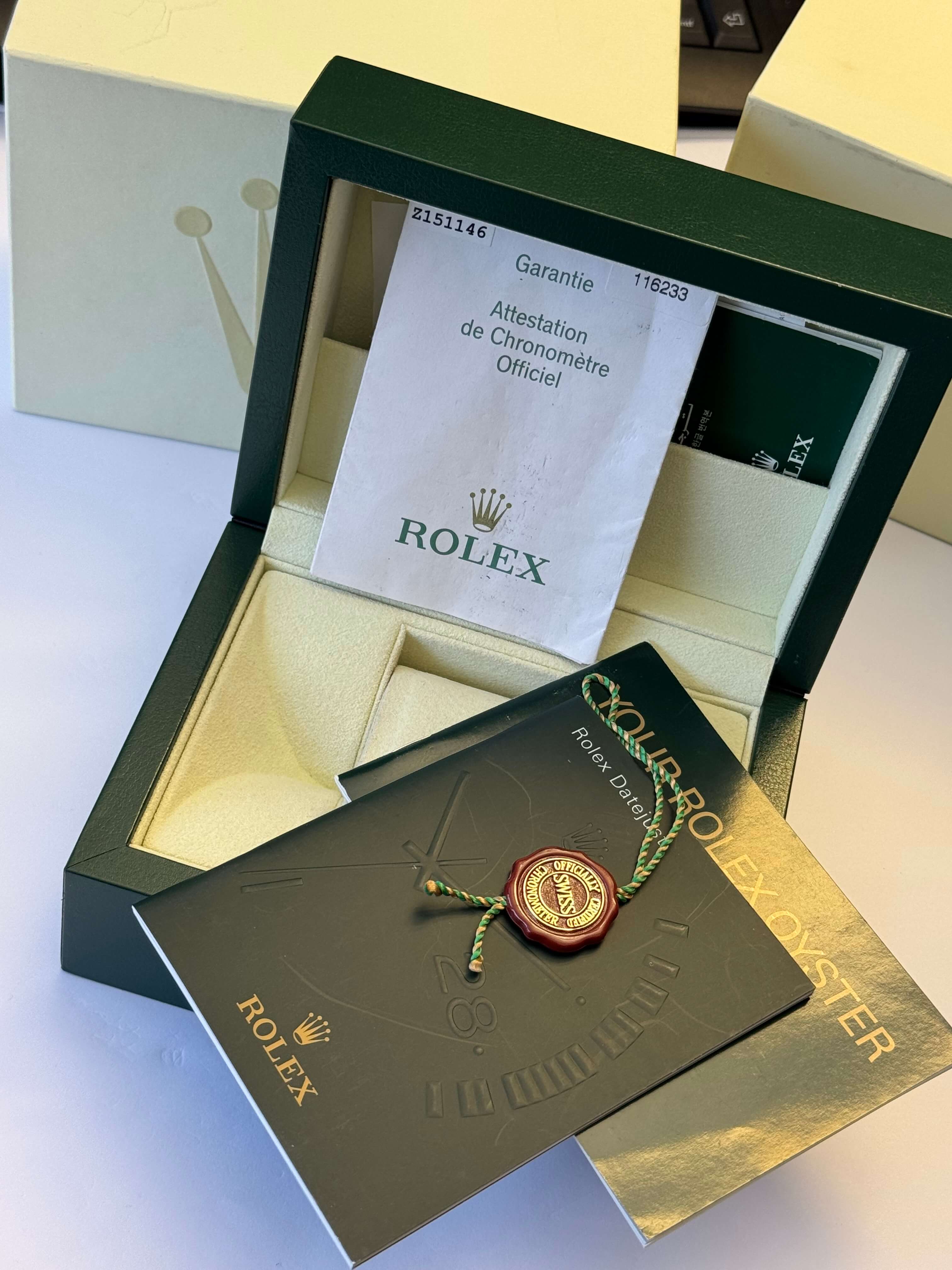 Die Rolex GMT-Master II Referenz 116710LN ist eine beeindruckende Uhr, die sowohl sportlich als auch elegant wirkt. Sie kommt mit originaler Garantiekarte. Diese Uhr verfügt über eine GMT-Funktion, die es ermöglicht, zwei Zeitzonen gleichzeitig abzulesen – ideal für Reisende. Mit ihrem markanten schwarzen Zifferblatt und der grünen 24-Stunden-Lünette ist sie der perfekte Begleiter für jeden Anlass.Bitte lassen Sie uns wissen, welchen Weg der Kontaktaufnahme Sie bevorzugen. Wir kommen dann baldmöglichst auf Sie zu.