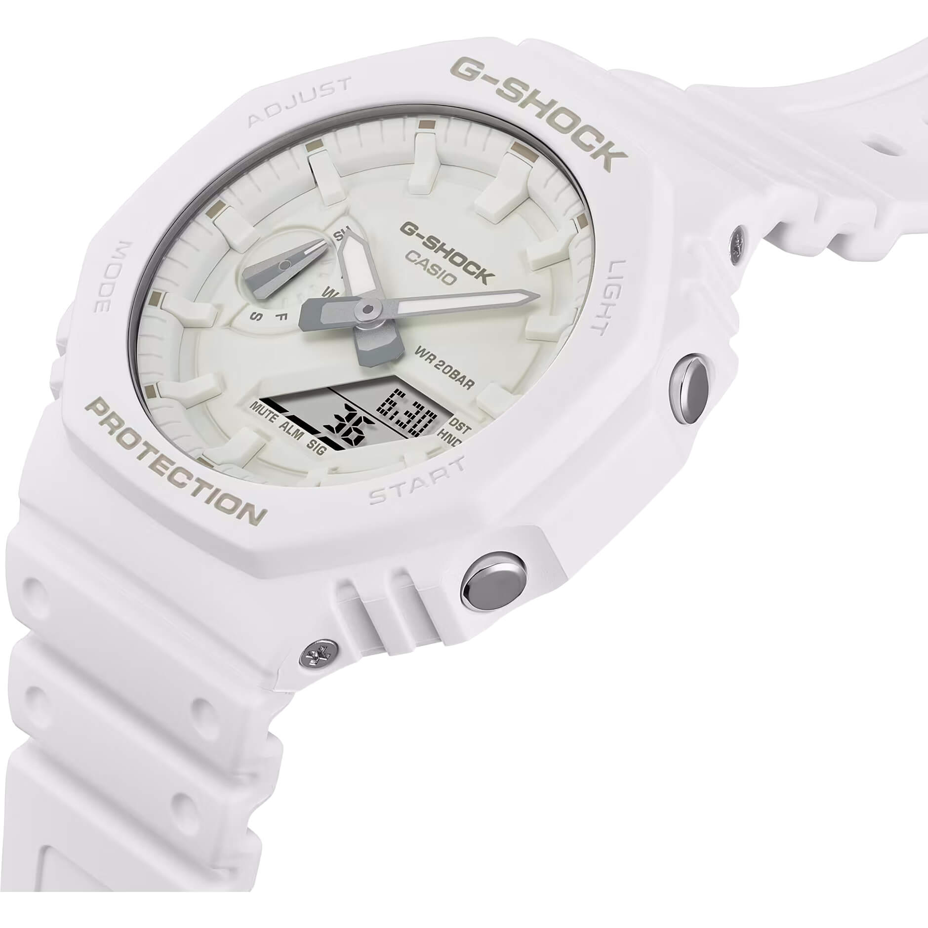 Entdecken Sie die neuen Tone-on-Tone Modelle von G-SHOCK, die der monochromen Ästhetik bis hin zu feinsten Details gewidmet sind. Die GA-2100 mit ihrem kultigen Tone-on-Tone Stil ist in drei beliebten Farben erhältlich: Türkis, Weiß und Volt-Gelb. Gehäuse, Lünette, Armband und sogar die einzelnen Zifferblattkomponenten sind in subtil unterschiedlichen Farbschattierungen derselben Farbe gefertigt und bieten so ein monochromatisches Aussehen mit erstaunlicher Tiefe und Dimension. Diese farbenfrohen Uhren sind ein tolles Modeaccessoire für Ihre Street-Kollektion.Produktspezifikationen