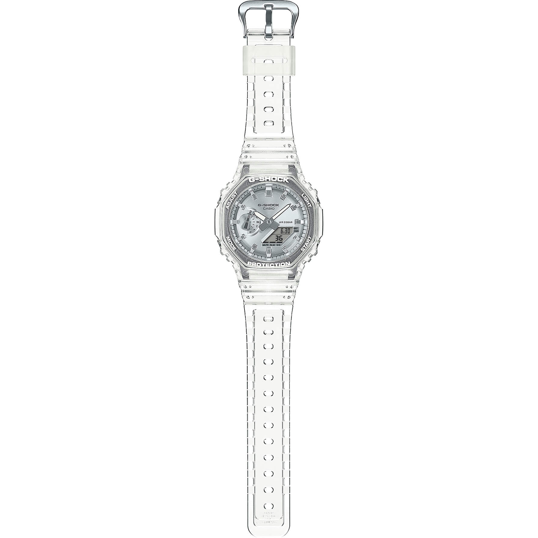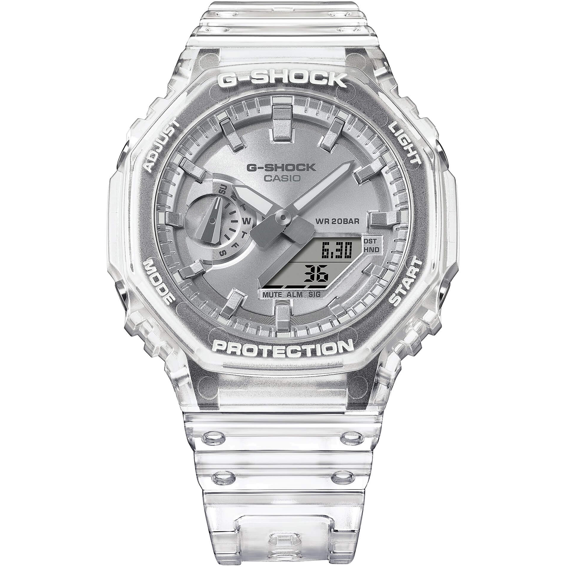 Glänzende Farben und klare Transparenz. Die GA-2100BM besticht mit einer achteckigen Lünette und einem metallisch schimmernden Zifferblatt, erhältlich in angesagten Farben wie Roségold, Blau oder Silber. Das transparente Band verleiht der Uhr eine moderne, durchscheinende Optik und ergänzt den trendigen Look perfekt. Diese lebhaften Uhren sind das ideale Accessoire, um deinem Streetstyle das gewisse Etwas zu verleihen.Produktspezifikationen