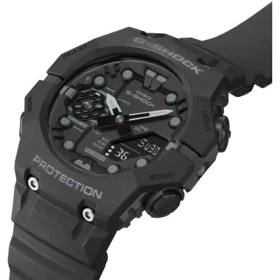 GA-B001 Serie von G-SHOCK: mit einem robusten Design und Smartphone Link-Funktion. Diese Zeitmesser sind nicht nur modisch, sondern auch komplett funktional. Synchronisiere die Uhr über Bluetooth® mit deinem Smartphone, und öffne die zugehörige App, um auf die gewünschten Funktionen zuzugreifen. Die GA-B001 Serie verfügt über eine innovative Konstruktion mit einer zweigeteilten Lünette, deren Teile sich bei 9 und 3 Uhr treffen. Dieses innovative Design wird durch sorgfältige Details ergänzt, mit Zeigermarkierungen und einem einzigartig diagonal geformten LCD-Display, das es so bei G-SHOCK bisher noch nie gegeben hat.Produktspezifikationen