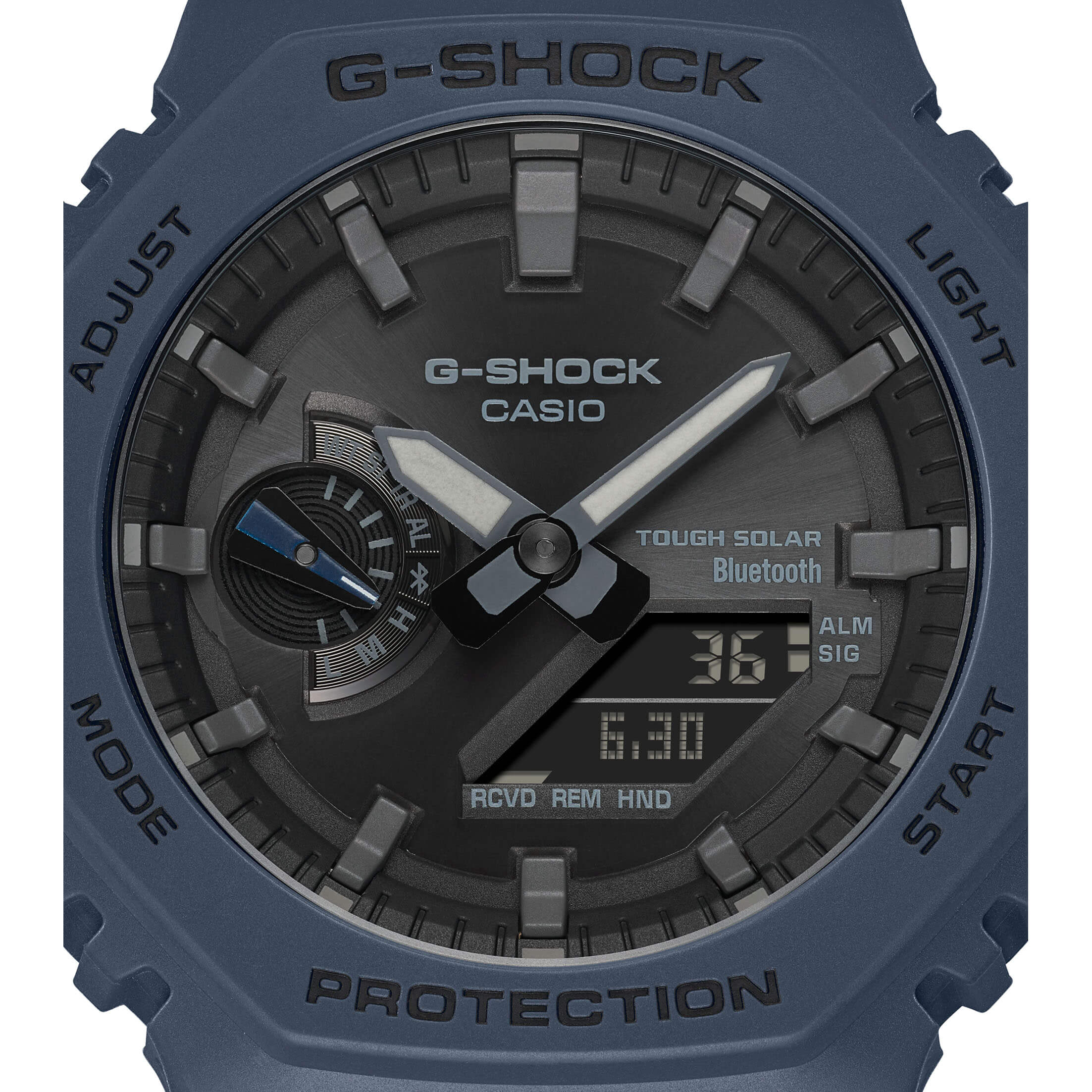 G-SHOCK Classic in dezentem Blau: Bluetooth® Smart, Genaue Uhrzeit via Smartphone, Super Illuminator, Stoßfest, Solarbetrieb, Neo-Display, Weltzeitfunktion, Stoppfunktion - 1/100 Sek. - 24 Std., Timer - 1/1 Sek. – 24 Std., 5 Tagesalarme, Tastentöne ein/aus, Hand Moving Funktion, Phone Finder, mehrsprachige Wochentagsanzeige, Flight Log Memory, Automatischer Kalender mit Datum, Monat und Wochentag, 12-/24-Stunden-FormatProduktspezifikationen