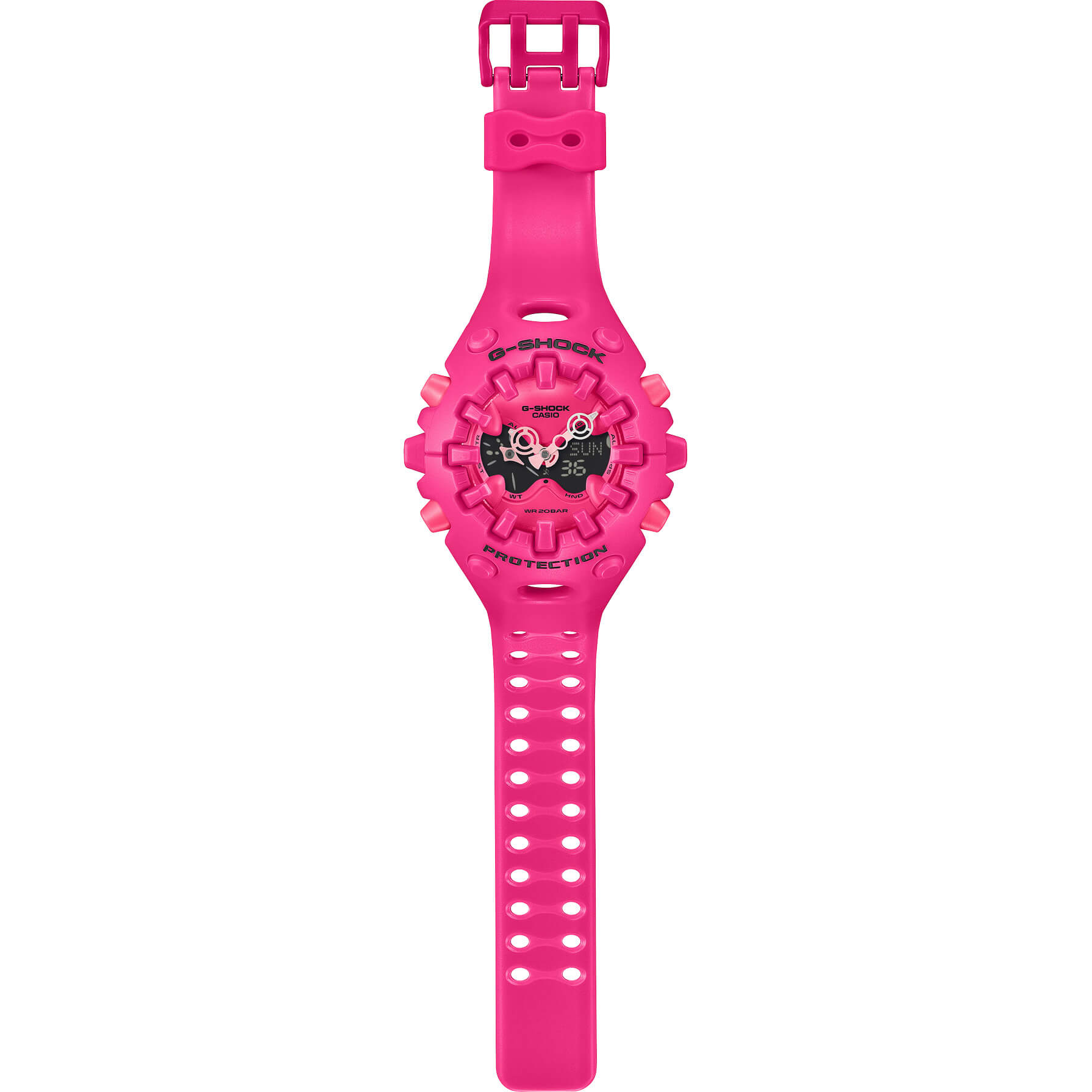 Mit diesen Uhren erhalten Sie nicht nur die legendäre Robustheit von G-SHOCK, sondern auch ein klares Statement für unverwechselbares Design. Entdecken Sie eine völlig neue Interpretation von Konstruktion und Form, kantig, organisch und überraschend. Die GA-V01 vereint markante Formen mit scharfkantigen Komponenten und kombiniert diese mit einem großen LCD, neu entwickelten stoßabsorbierenden Zeigern und weiteren Innovationen, die die G-SHOCK Identität von Widerstandsfähigkeit perfekt widerspiegeln. Das innere Gehäuse schützt das Modul, während die äußere Konstruktion mit integrierter Lünette und Band den Look abrundet. Die großen Indizes überlappen das Glas und wirken wie Stoßdämpfer – ein Design, das auffällt und gleichzeitig schützt. Für die Zeiger haben wir eine neue magnetische Haltestruktur entwickelt: Statt direkt am Schaft fixiert zu sein, werden sie mit Magnetkraft gehalten. So werden Stöße effektiv absorbiert, größere Zeiger sind möglich, und Designer erhalten mehr Freiheit bei der Gestaltung. Das mehrschichtige Analog-Digital-Zifferblatt kombiniert ein Vollbild-LCD mit einem durchbrochenen Metallzifferblatt, das dekorative, transparente Bereiche bildet. Speziell gestaltete, übergroße Stunden- und Minutenzeiger sowie ein zusätzlicher Zeiger im LC-Display runden das originelle Design ab. Die GA-V01 überzeugt nicht nur optisch, sondern auch funktional: Dank Hochleistungsbatterie mit bis zu 10 Jahren Lebensdauer, Alarmfunktion, LED-Beleuchtung und weiteren Features. Wählen Sie Ihren Favoriten aus drei neuen Farbvarianten: reines Weiß, leuchtendes Pink oder stylishes, mattes Gold.Produktspezifikationen
