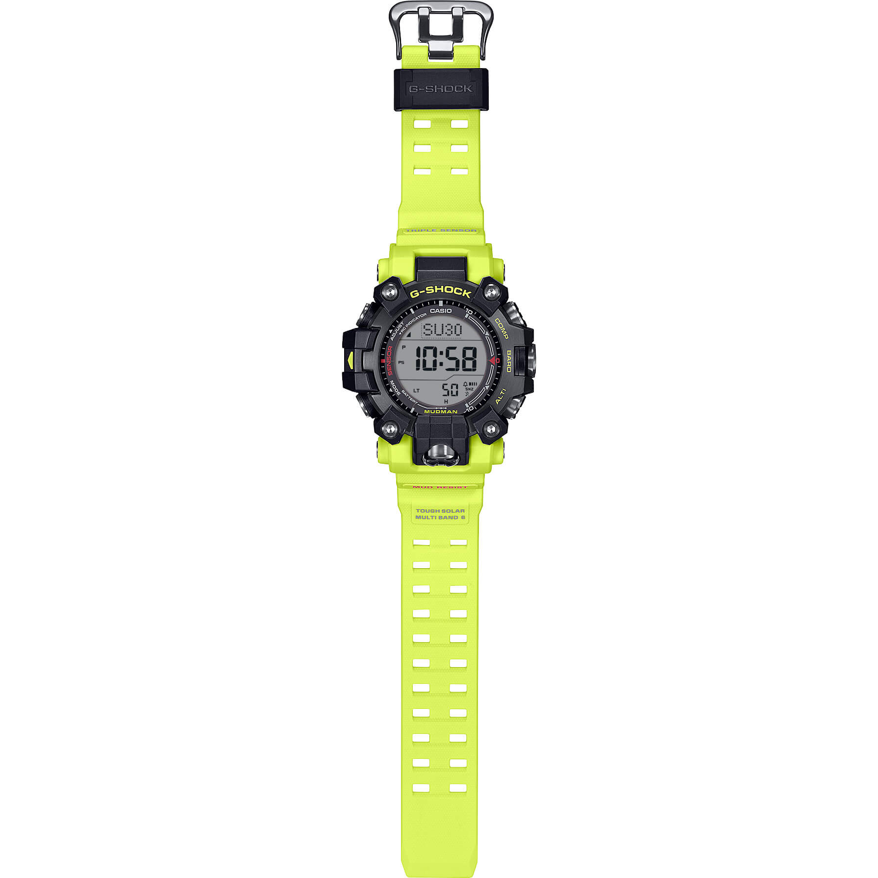 Egal, wo Sie sich befinden oder welche Herausforderung Sie meistern – die G-SHOCK „Master of G“-Serie ist an Ihrer Seite. Die MUDMAN wurde für extreme Bedingungen konzipiert und bietet selbst unter härtesten Umständen höchste Leistung. Ihr tiefschwarzes Design steht für unerschütterliche Robustheit, während das leuchtend gelbe Armband – inspiriert von Notruf- und Sicherheitszeichen – sofort ins Auge fällt. Ideal für Profis, die bei Rettungseinsätzen und kritischen Missionen ihr Bestes geben. Die MUDMAN GW-9500MRY ist staub-, schlamm- und stoßfest und verfügt über funkgesteuerte, solarbetriebene Funktionen. Das Duplex-LCD sorgt für optimale Lesbarkeit der digitalen Kompassanzeige, während Edelstahl-Lünetten mit schwarzer Ionenplattierung der Uhr einen kompromisslosen Look verleihen. Kurz gesagt: Diese Uhr bietet Ihnen alles, was Sie brauchen, um in extremen Umgebungen blitzschnelle Entscheidungen zu treffen und entschlossen zu handeln.Produktspezifikationen