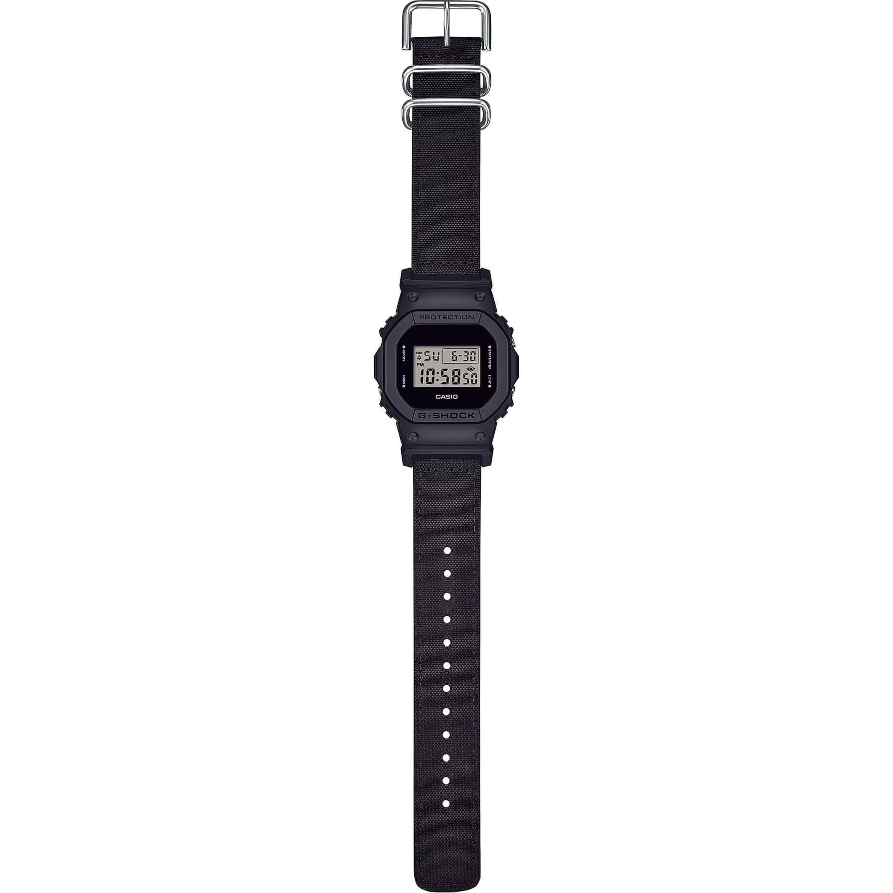 Street-smart, zweckmäßig und naturbewusst zugleich – diese G-SHOCK mit Cordura-Nylonarmband deckt alles ab. Das modische, komplett schwarze Design wird ergänzt durch ein Armband aus umweltfreundlichem Cordura-Nylon, das für einen coolen, vielseitigen Look sorgt, der sich nahtlos in Ihr Outfit einfügt.Produktspezifikationen