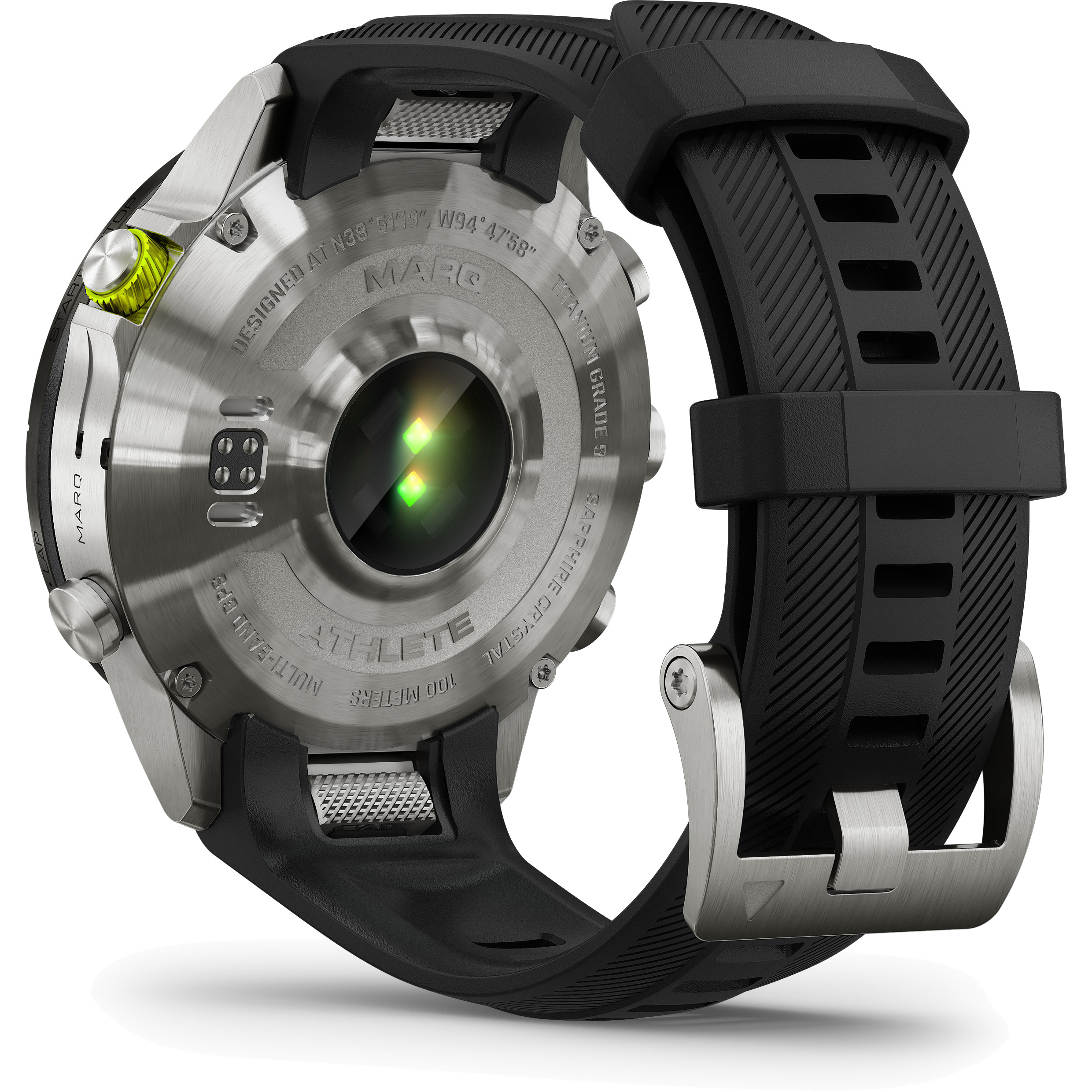 Erreichen Sie neue Bestleistungen: Die sportliche, elegante MARQ Athlete aus ultraleichtem Titanium Grade 5 hilft Ihnen Ihr wahres Potenzial abzurufen. Sie ist das intelligente Coaching-Tool, mit dem Sie Ihre Leistung gezielt weiterentwickeln können. Mit physiologischen Messwerten für unterschiedlichte Sportarten alaysieren Sie Ihre Trainingserfolge. Topoactive Karten mit den besten Lauf- und Radstrecken sorgen für ein abwechslungsreiches Trainingsprogramm, das auf Ihre Ziele abgestimmt ist. Lesen Sie die Daten von dem brillianten neuen AMOLED Touchdisplay ab. Messen Sie Ihre Aeroben und Anaeroben Ausdauerwerte, um diese systematisch zu verbessern. Mit bis zu 16 Tagen im Smartwatch- und bis zu 41 Stunden im GPS-Modus ist die MARQ Athlete der ständige Begleiter auf dem Weg zu Ihrer Bestleistung.Produktspezifikationen