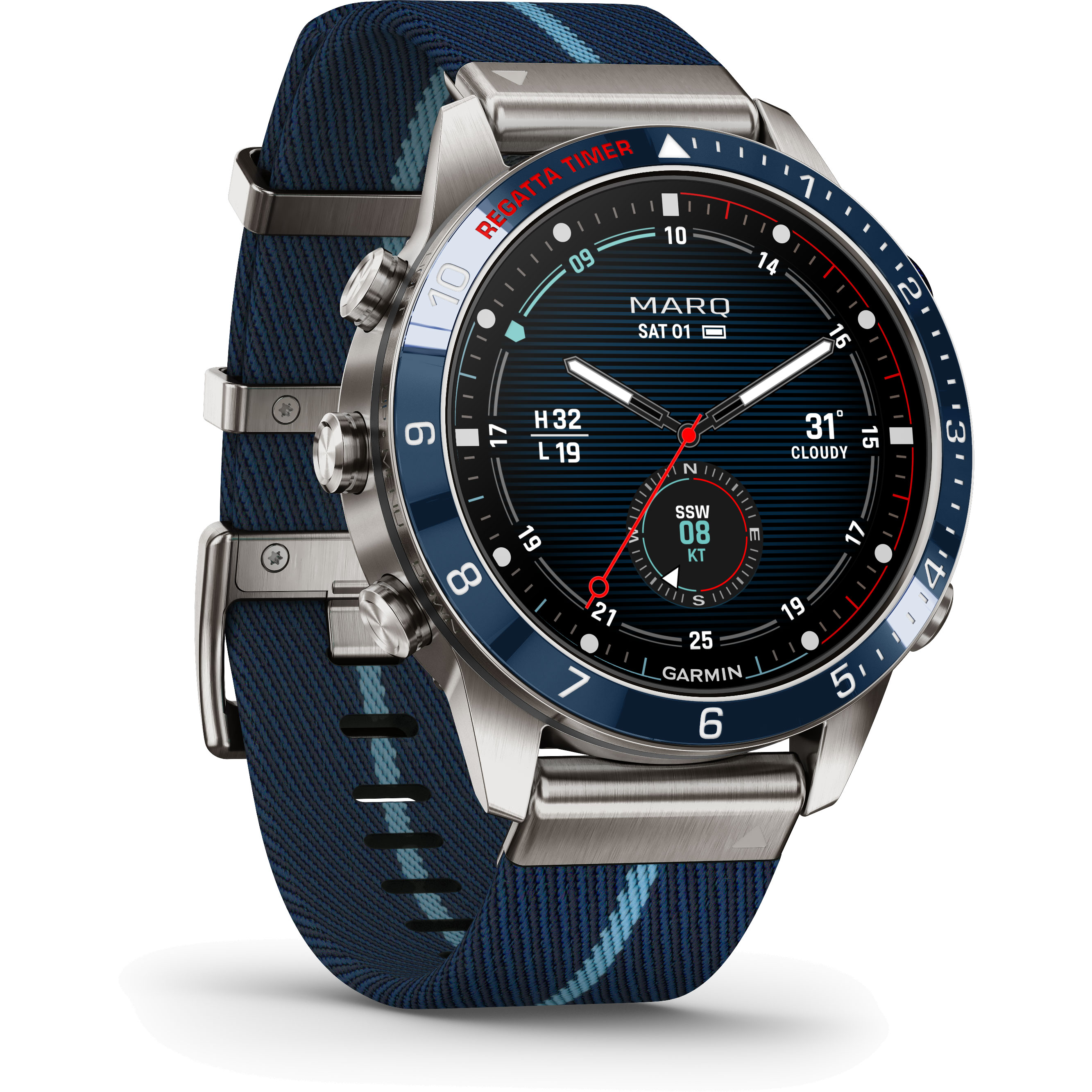 Bereit für jedes Manöver: Die MARQ Captain vereint Ihre Segelleidenschaft mit innovativer Technologie der neusten Generation. Diese einzigartige Tool Watch verfügt über ein elegantes Titanium Grade 5 Gehäuse, eine Keramiklünette und ein brillantes AMOLED Touchdisplay, die jeder noch so rauen See trotzen. Unschlagbar ist auch die Akkulaufzeit von bis zu 16 Tagen im Smwartwatch- und bis zu 42 Stunden im GPS-Modus. Bestimmen Sie den Start so exakt wie nie mit dem verbeserten Regatta-Timer. Geben Sie bevprzugte Windgeschwindigkeiten ein uns schauen Sie die Vorhersagen auf Ihrer Tool Watch an. So erfahren Sie den idealen Zeitpunkt, um in See zu stechen. Mit der MARQ Captain segeln Sie immer auf Erfolgskurs.Produktspezifikationen
