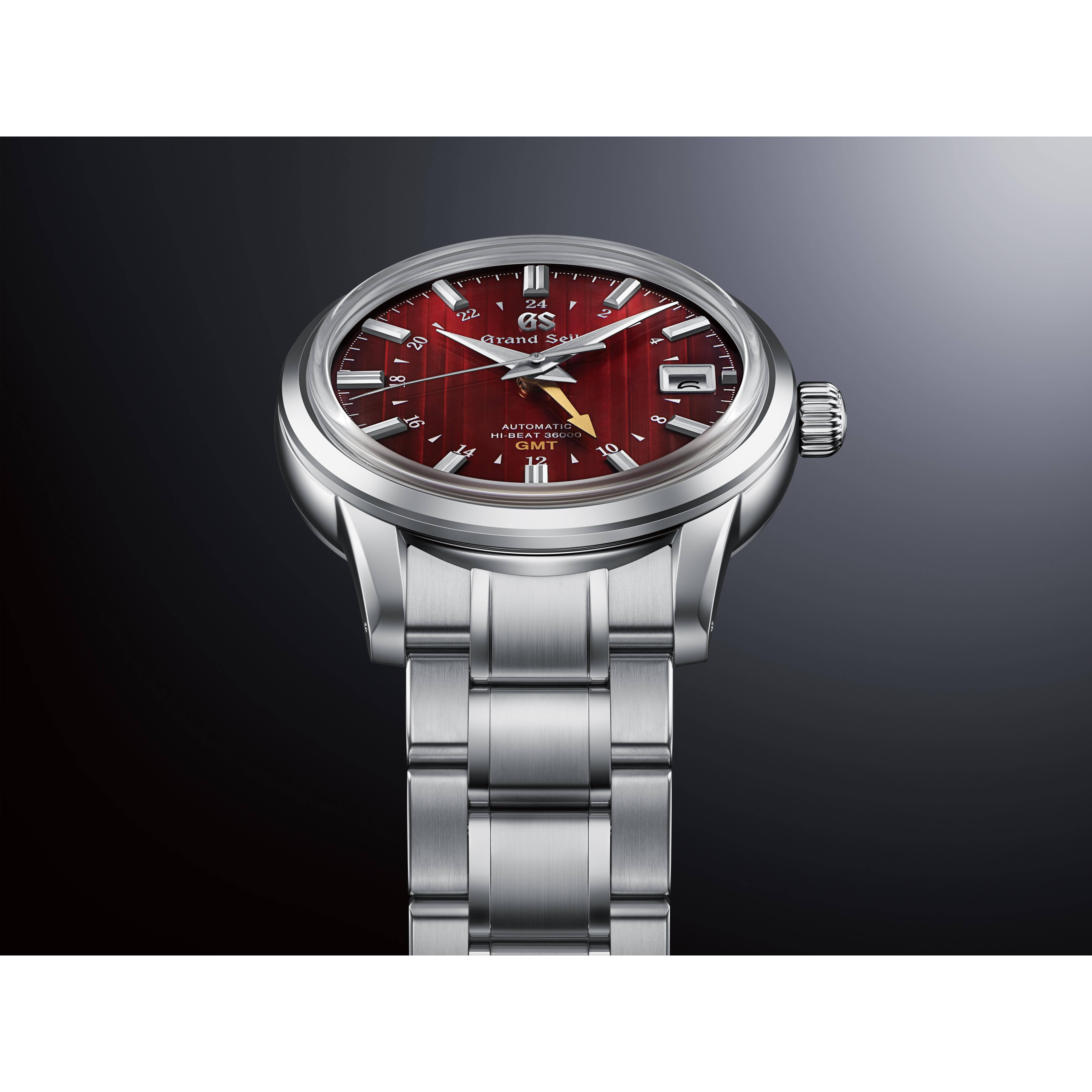 In Japan ist der Zauber des Jahreszeitenwechsels fest in den Alltag integriert. Die mechanische Grand Seiko Hi-Beat 36000 GMT greift dieses Konzept auf und vermittelt die Schönheit des Herbstes, die man in einem traditionellen japanischen Gebäude mit lackierten Holzböden erleben kann. Das Zifferblatt dieser Uhr zeigt eine strukturierte Oberfläche, die ein breites Spektrum von Rottönen widerspiegelt, ähnlich wie es das Licht in einem Raum mit lackierten Holzböden tut. Diese Vielfalt an Rottönen erinnert an die Art und Weise, wie unterschiedlich gefärbte Holzböden die verschiedenen Nuancen des sich wandelnden Herbstlaubs widerspiegeln können. Darüber hinaus verfügt das mechanische Kaliber 9S86 Hi-Beat 36000, das von erfahrenen Fachleuten im Grand Seiko Studio Shizukuishi montiert wird, über einen farbigen GMT-Zeiger in einem kräftigen Goldton, der dem Zifferblatt eine zusätzliche herbstliche Note verleiht.Produktspezifikationen