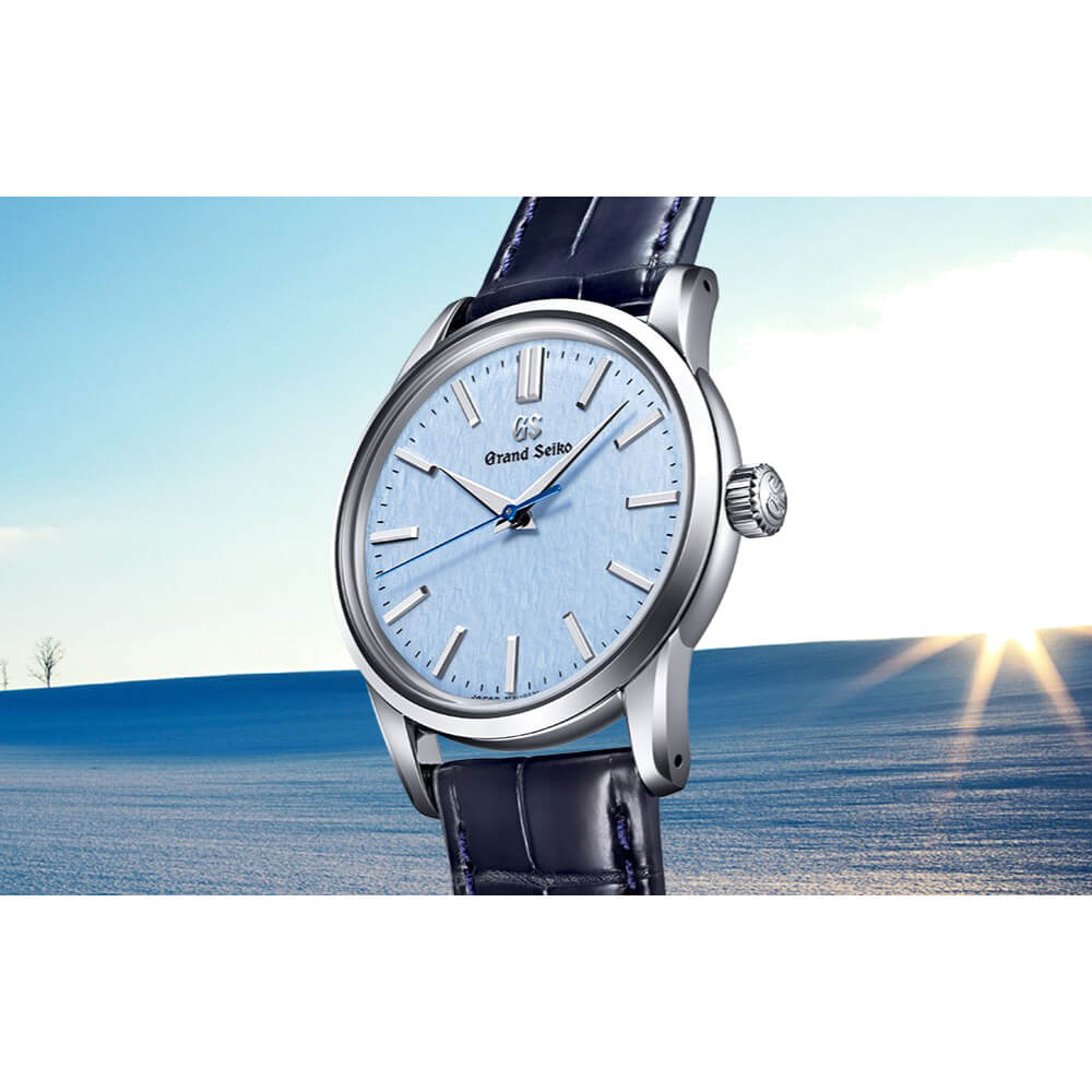 Trotz ihres schlanken, kleinen und minimalistischen Designs verkörpert diese elegante Grand Seiko Quarzuhr in vollem Umfang die Grundprinzipien von Präzision, Haltbarkeit, Ablesbarkeit und Schönheit, die den Werten von Grand Seiko zugrunde liegen. Das innovative 9F-Quarzkaliber dieser Uhr gewährleistet höchste Präzision mit einer maximalen Abweichung von nur 10 Sekunden pro Jahr. Die langen Minuten- und Sekundenzeiger erstrecken sich bis zum Minutenring, wodurch eine präzise Zeitablesung ermöglicht wird. Die Indizes sind fünffach facettiert und diamantgeschliffen, was zu einer klaren Abgrenzung vom Zifferblatt führt. Die auffällige Gestaltung der 12-Uhr-Markierung ermöglicht ein müheloses Ablesen der Uhrzeit aus jedem Blickwinkel. Besonders herausragend ist jedoch das blassblaue Zifferblatt, das von der Schönheit des Schnees inspiriert ist. Hergestellt im Shinshu Uhrenstudio hoch in den Bergen Zentraljapans, spiegelt es die Textur und Farbe des Schnees wider, der die Uhrmacher von Grand Seiko in dieser Region während mehrerer Monate im Jahr umgibt. Das Zifferblatt ist schlicht und frei von Schnörkeln, mit einer ruhigen und gelassenen Schönheit, die eine einzigartig japanische Atmosphäre vermittelt.Produktspezifikationen