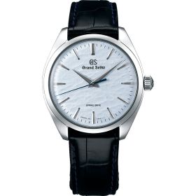 Elegance Spring Drive - Jeden Winter friert das Wasser des Suwa-Sees zu und in den meisten Jahren erscheint ein langer Kamm im Eis von einer Seite des Sees zur anderen. Der Überlieferung nach ist dies der "Omiwatari" oder der Ort, an dem die Götter über das Eis hinausgehen. Ob wahr oder nicht, die Legende hat die Handwerker im nahe gelegenen Shinshu Watch Studio dazu inspiriert, ein Zifferblatt von erlesener Subtilität für diesen Spring Drive Handaufzugszeitmesser zu kreieren. Es hat die Farbe, Haptik und Textur des schneebedeckten Eises auf dem Suwa-See. Das Uhrwerk ist das Spring Drive Kaliber 9R31 mit Doppelfederhaus, das bei Vollaufzug eine Gangreserve von 72 Stunden bietet. Seine exquisite Verarbeitung ist durch den Glasboden mit der Gangreserveanzeige sichtbar.