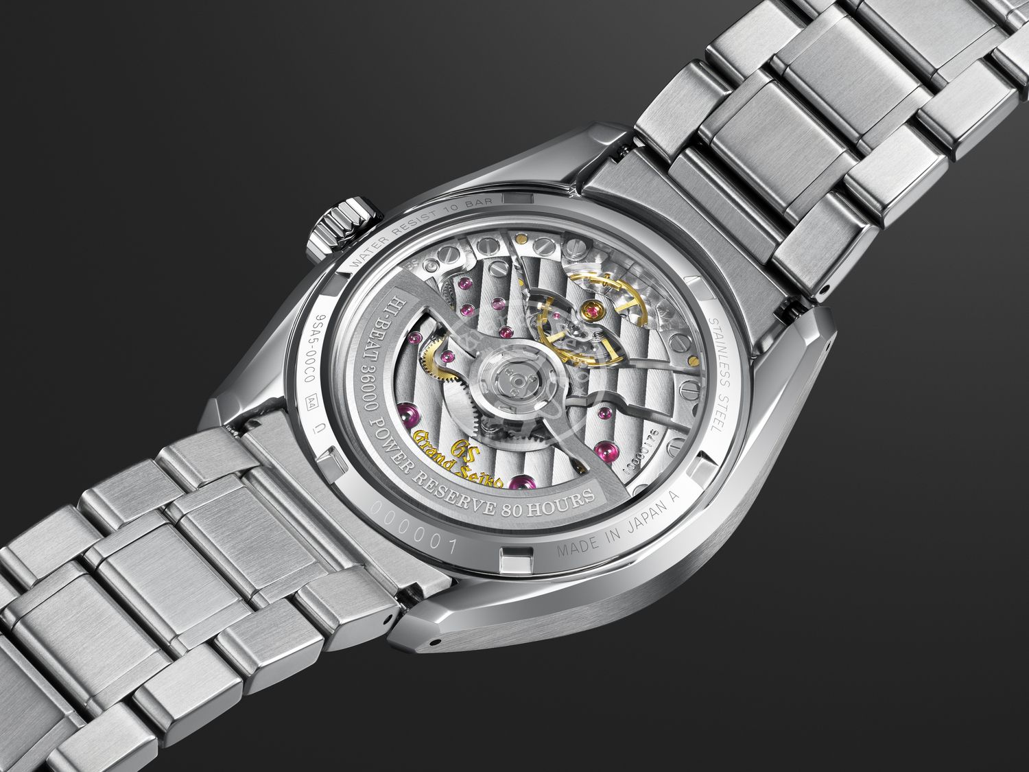 Inspiriert von der Schönheit der japanischen Weißbirke im Design der Evolution 9. SLGH005 vereint die Dynamik der Weißbirkenwälder rund um das Shizukuishi Uhrenstudio, in welchem alle mechanischen Grand Seiko Uhren gefertigt werden. Wer das Zifferblatt genau betrachtet, erlebt das gleiche Gefühl wie als Besucher dieser Wälder und wird der wahren und ewigen Natur der Zeit näher gebracht als je zuvor. Das Gesamtbild der Uhr ist als Serie 9 Design bekannt und wird in den kommenden Jahren ein wichtiger Teil der Charakteristik der Grand Seiko Heritage Kollektion sein. Die kräftigen Zeiger und die gefurchten, markanten Indizes sorgen für perfekte Ablesbarkeit. Der Wechsel zwischen perfektem Spiegelglanz mit Zaratsu Polissage und gebürstetem Finish verleiht dem Gehäuse einen ruhigen und harmonischen Schimmer. Zudem hat das Gehäuse breite Bandanstöße und einen niedrigen Schwerpunkt, sodass die Uhr leicht und sicher am Handgelenk sitzt. Angetrieben wird die Hi-Beat durch das revolutionäre Kaliber 9SA5, das dank seiner verbesserten Energieeffizienz eine Gangreserve von 80 Stunden bietet.