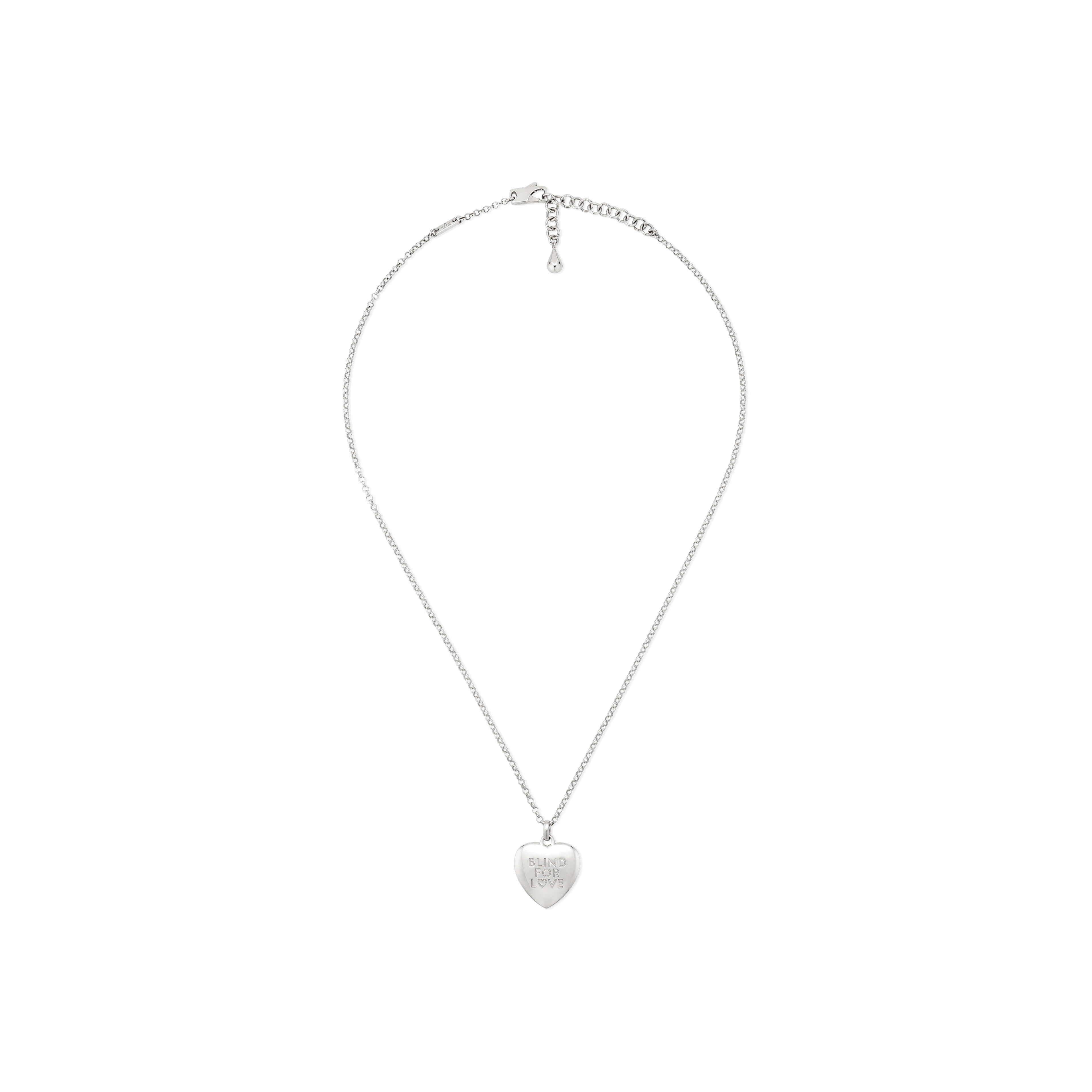 Mit der Herbst/Winter 2025 Kollektion kehrt der ikonische Schriftzug „Blind for Love“ in neuer Interpretation zurück ins Zentrum der Aufmerksamkeit. Als poetisches Symbol für Guccis fortlaufende Erzählung von Romantik und Emotion ziert die Gravur einen zarten, herzförmigen Anhänger – ein weiteres charakteristisches Element des Hauses. Die beidseitige Gravur ermöglicht es, die Halskette individuell zu tragen und je nach Stimmung oder Stil das bevorzugte Motiv in den Vordergrund zu stellen.Produktspezifikationen
