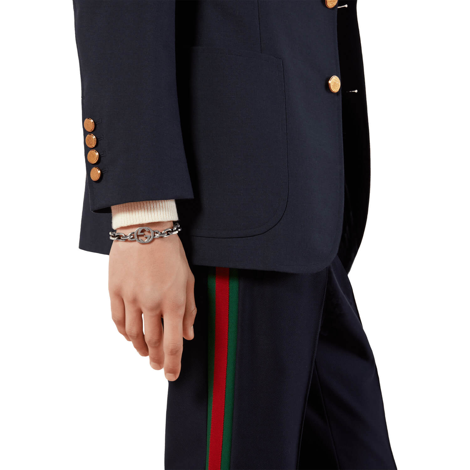 Seit seiner Einführung ist das GG einer der ikonischsten Codes vom Hause Gucci. Dieses charakteristische Symbol aus 925er Sterlingsilber schmückt ein breites Kettenarmband.Produktspezifikationen