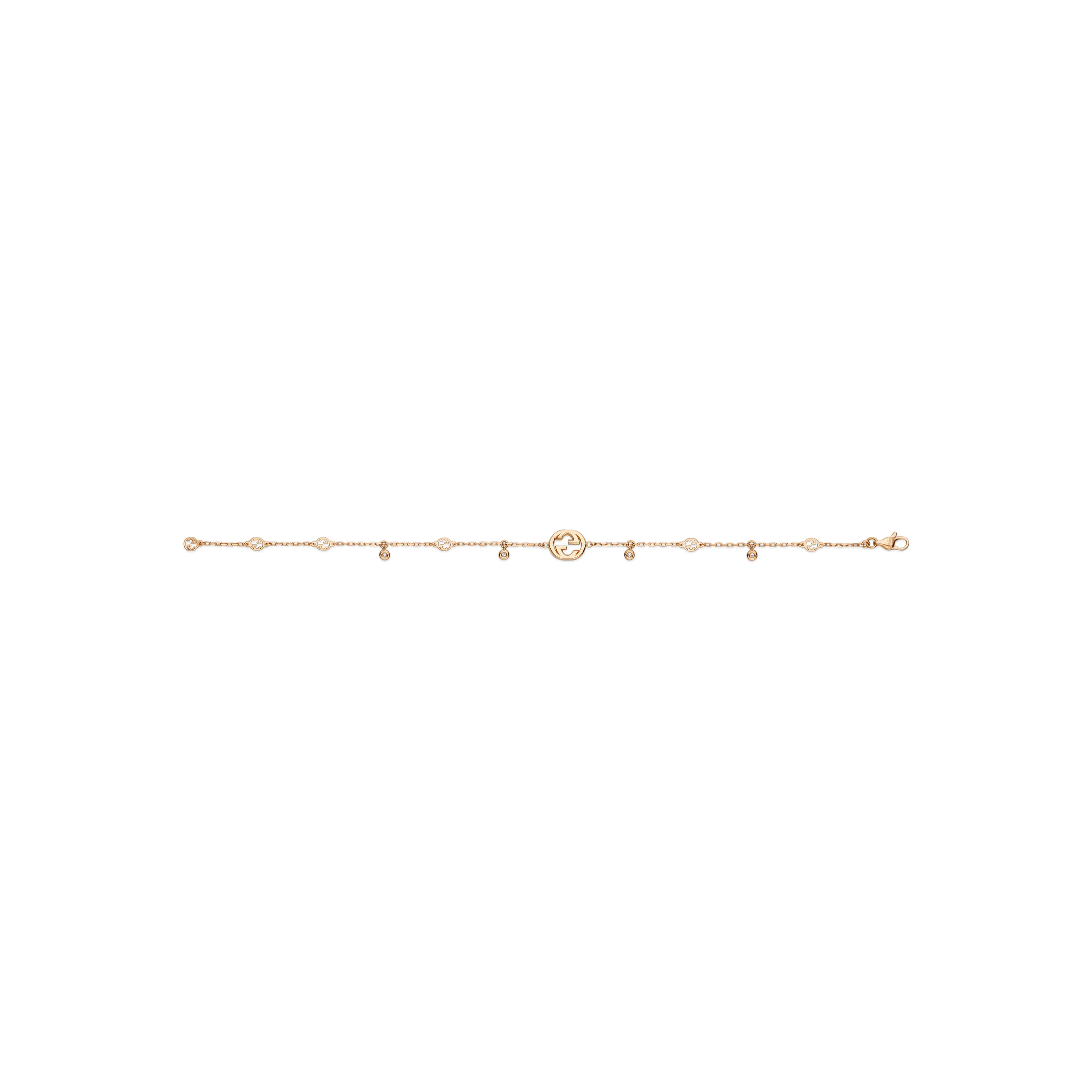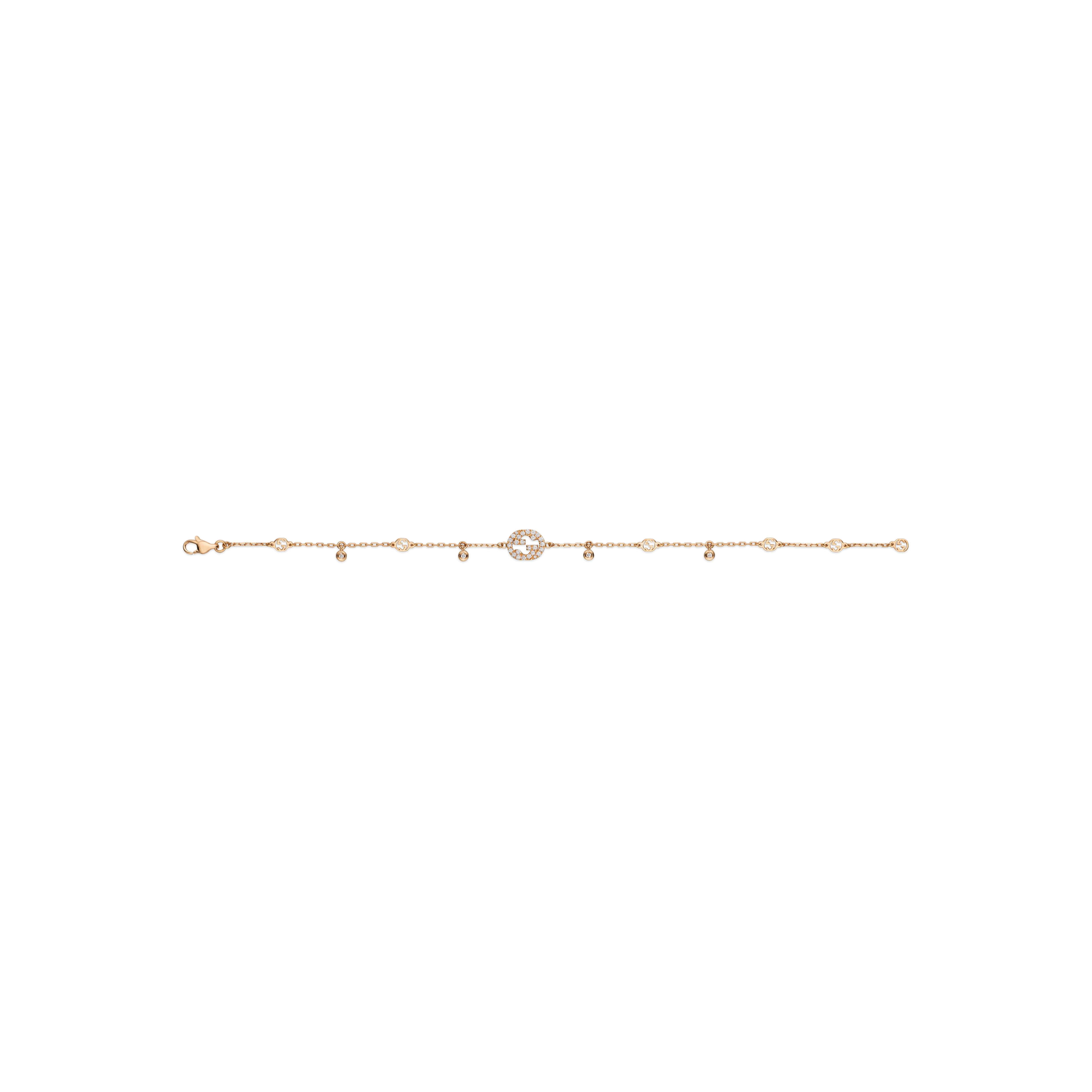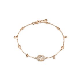 Die Idee hinter diesem Design aus der Interlocking G Schmuckkollektion basiert auf dem geometrischen Logo des Hauses. Dieses Armband, gefertigt aus 18-karätigem Rotgold und geschmückt mit funkelnden Diamanten und dem GG-Motiv, ist die ideale Ergänzung für den täglichen Gebrauch.Produktspezifikationen