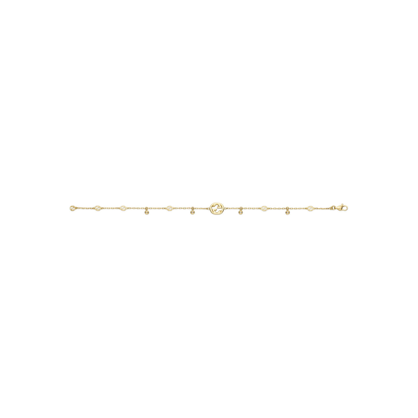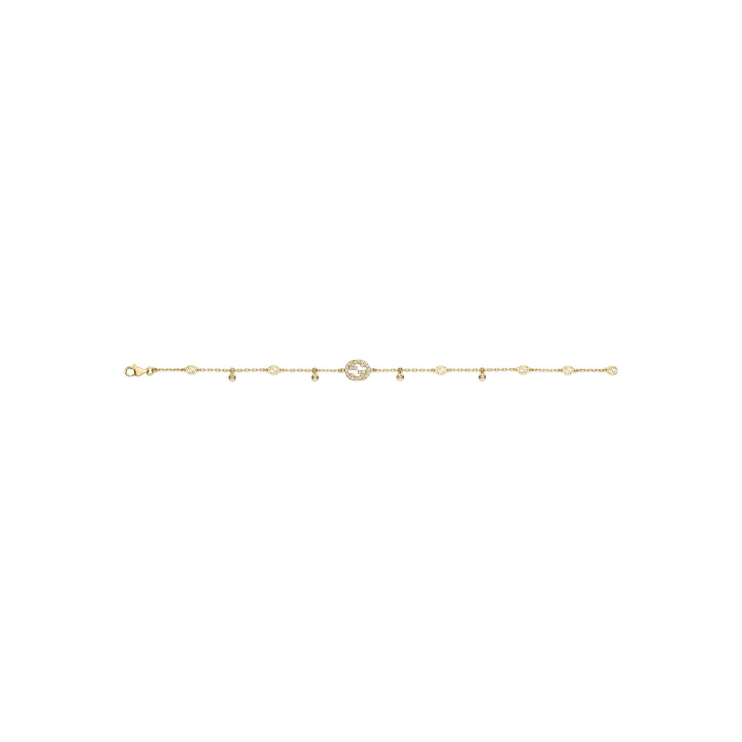 Die Idee hinter diesem Design aus der Interlocking G Schmuckkollektion basiert auf dem geometrischen Logo des Hauses. Dieses Armband, gefertigt aus 18-karätigem Gelbgold und geschmückt mit funkelnden Diamanten und dem GG-Motiv, ist die ideale Ergänzung für den täglichen Gebrauch.Produktspezifikationen