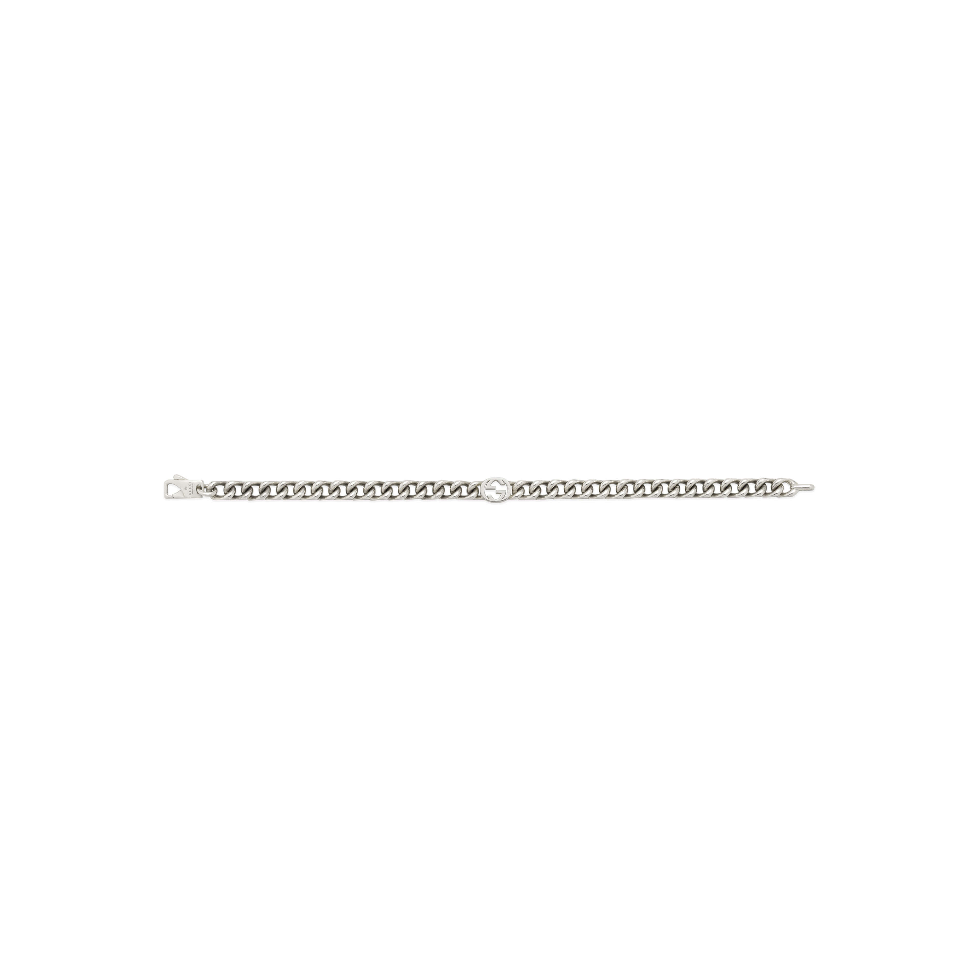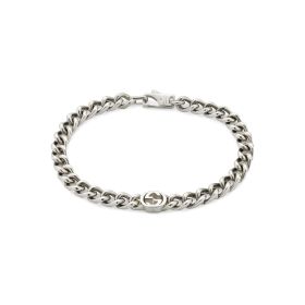 Für Herbst/Winter 2025 präsentiert Gucci aus der Gucci Interlocking Linie neue Ringe mit zwei Bändern und markante Creolen, die das GG-Logo modern in Szene setzen. Elegante Gliederhalsketten und Armbänder aus 925/- Silber tragen das Logo als stilvollen Anhänger. Dieses Armband interpretiert das Motiv besonders subtil als Schmuckelement an der Schließe.Produktspezifikationen
