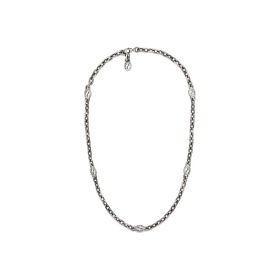 Diese Gliederhalskette besteht aus Sterlingsilber mit antikem Finish und wird vom GG bestimmt. Das Monogramm zollt dem Gründer Guccio Gucci als Symbol aus den Archiven des Hauses Tribut und bietet eine dezente Logo-Komposition.Produktspezifikationen