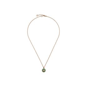 Die GG-Logos werden in der Pre-Fall-Kollektion 2024 in raffinierten neuen Varianten präsentiert. Dabei treffen elegantes Roségold, grüner Achat und funkelnde Diamanten aufeinander. Die verstellbare Gliederhalskette bietet vielseitige Kombinationsmöglichkeiten mit anderen Accessoires aus der gleichen Linie.Produktspezifikationen