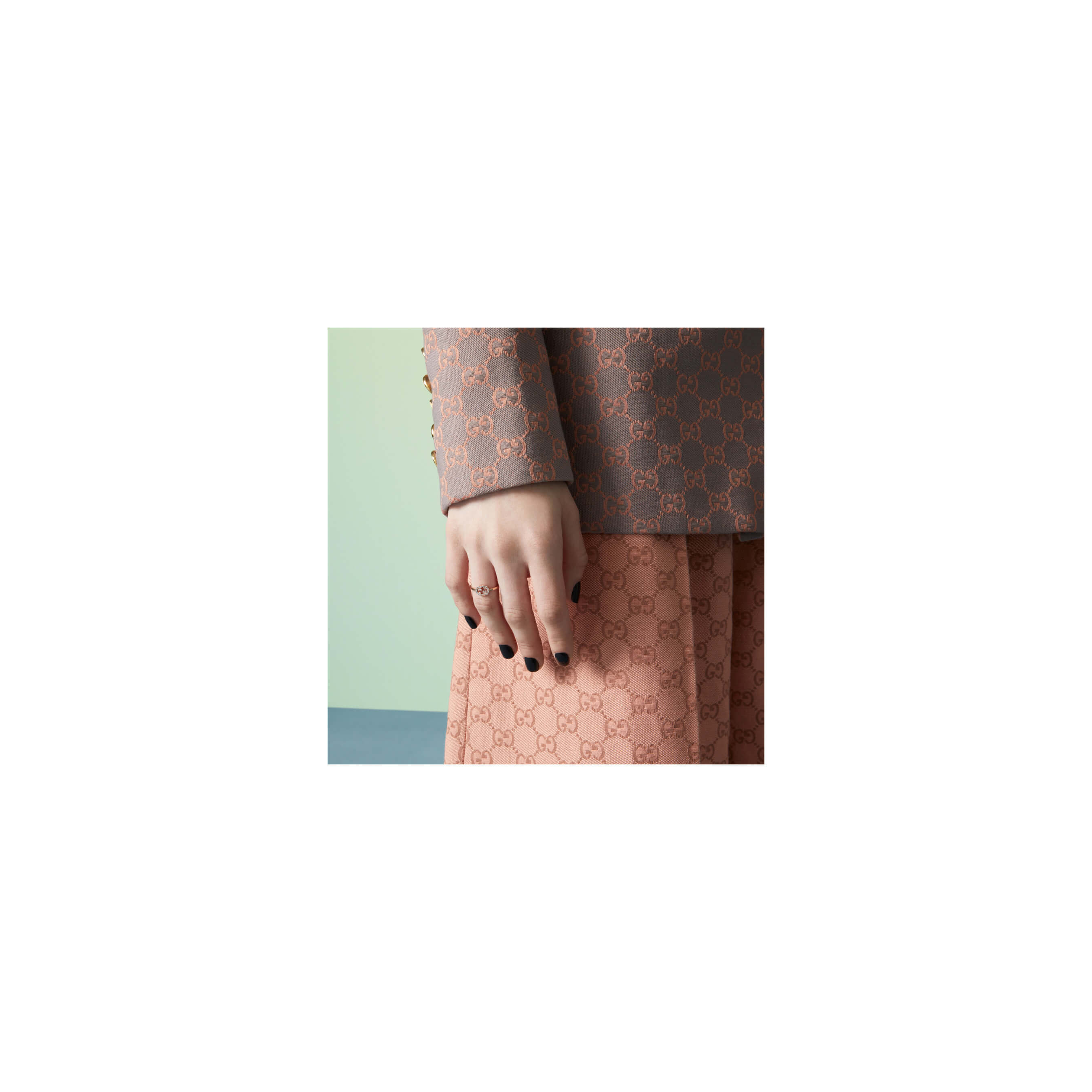 Die Idee für diesen Ring aus der GG Schmuckkollektion wurde vom geometrischen Logo des Hauses inspiriert. Das mit Diamanten besetzte Design, das aus glattem Rotgold gefertigt ist, zieht sowohl tagsüber als auch abends alle Blicke auf sich.Produktspezifikationen