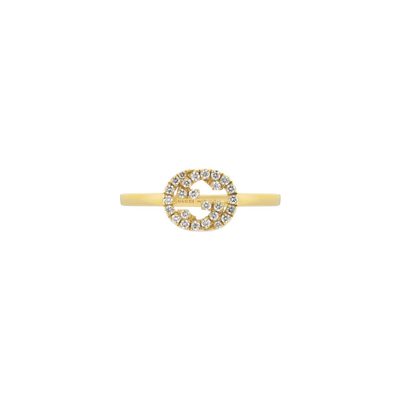 Die Idee für diesen Ring aus der GG Schmuckkollektion wurde vom geometrischen Logo des Hauses inspiriert. Das mit Diamanten besetzte Design, das aus glattem Gelbgold gefertigt ist, zieht sowohl tagsüber als auch abends alle Blicke auf sich.Produktspezifikationen