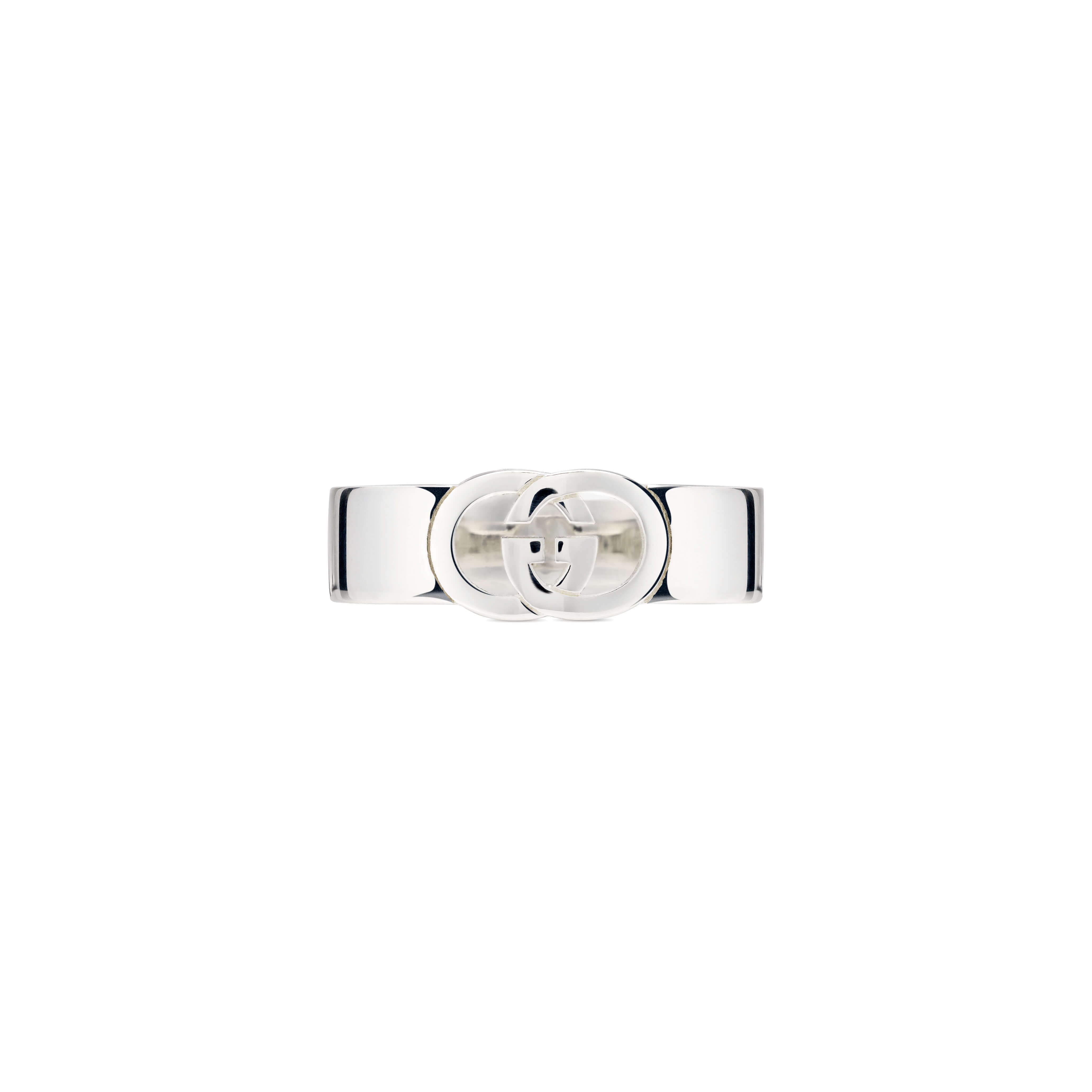 Eine Kollektion aus Ohrringen, Halsketten und Ringen interpretiert das klassische GG-Symbol in einem geometrisch inspirierten Stil und verleiht dem ikonischen Logo des Hauses eine moderne Note. Dieser Ring aus Sterlingsilber ist mit einem GG Cut-out-Detail versehen.Produktspezifikationen