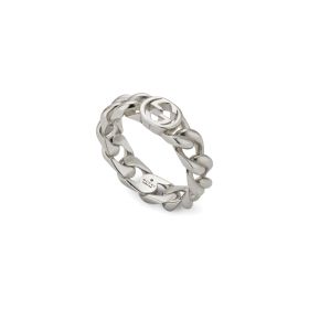 Für Herbst/Winter 2025 präsentiert Gucci aus der Gucci Interlocking Linie neue Ringe mit zwei Bändern und markante Creolen, die das GG-Logo modern in Szene setzen. Elegante Gliederhalsketten und Armbänder aus 925/- Silber tragen das Logo als stilvollen Anhänger. Dieser Ring verbindet das charakteristische Motiv mit einem breiten Kettendesign und setzt ein modernes Statement.Produktspezifikationen