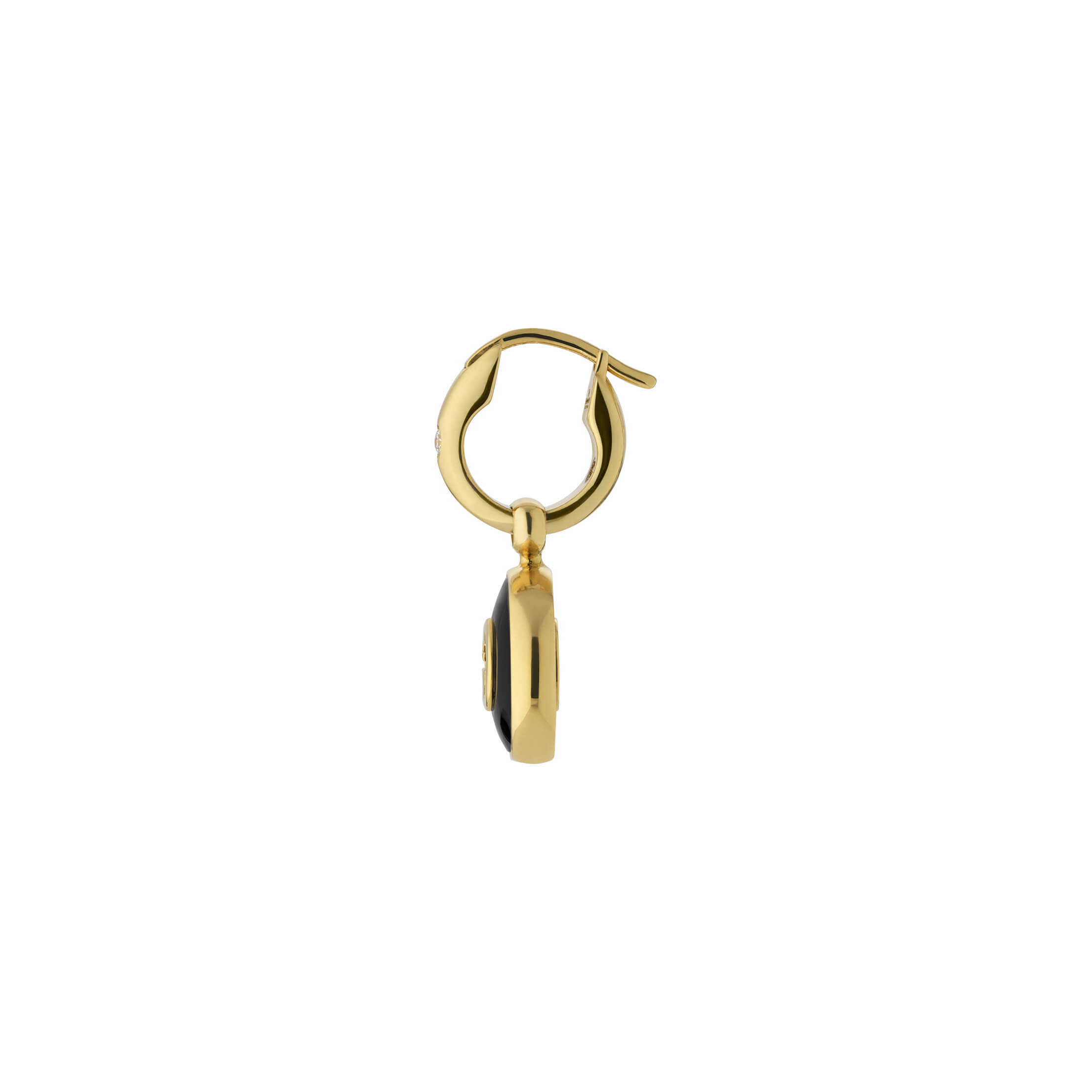 Für Pre-Fall 2024 werden raffinierte Neuinterpretationen des GG-Logos präsentiert. Hier verschmilzt ein schwarzer Onyx-Edelstein mit 18-karätigem Gelbgold und strahlenden Diamanten. Diese Creolen eignen sich perfekt zum Kombinieren mit anderen Accessoires aus der gleichen Kollektion.Produktspezifikationen