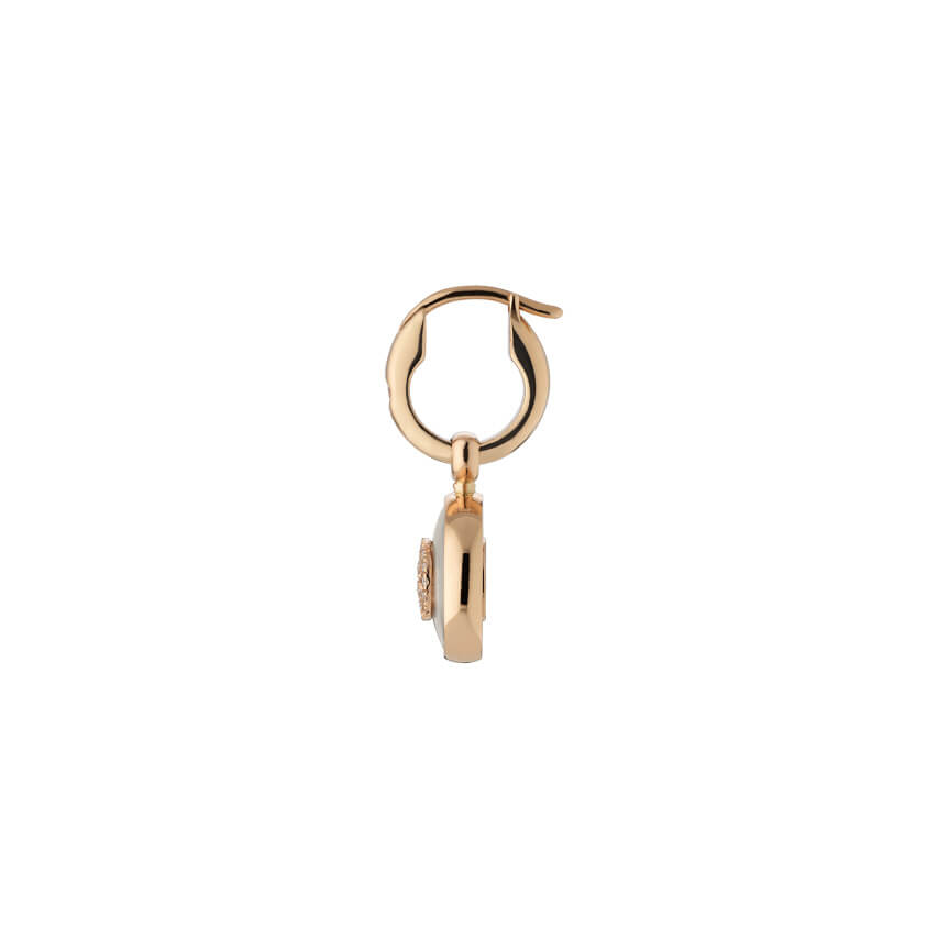 In der Pre-Fall Kollektion 2024 präsentiert sich das GG Logo in raffinierten Neuinterpretationen. Elegantes Roségold trifft auf schimmerndes Perlmutt und einen Diamant-Pavé-Besatz. Diese Creolen lassen sich perfekt mit anderen Accessoires der gleichen Linie kombinieren.Produktspezifikationen