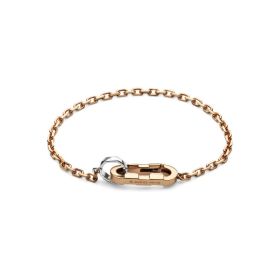 Die Gucci Link to Love Kollektion präsentiert einen neuen Verschluss mit rechteckigen Kettengliedern, die durch kleine Ringe verbunden sind. Als Schlüsselelement in Halsketten, Ohrringen und Armbändern betont dieses moderne Design das Gefühl der Zusammengehörigkeit. Ein Kettenarmband aus edlem Rosé- und Weißgold zeigt dieses Detail besonders hervorragend.Produktspezifikationen